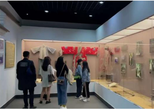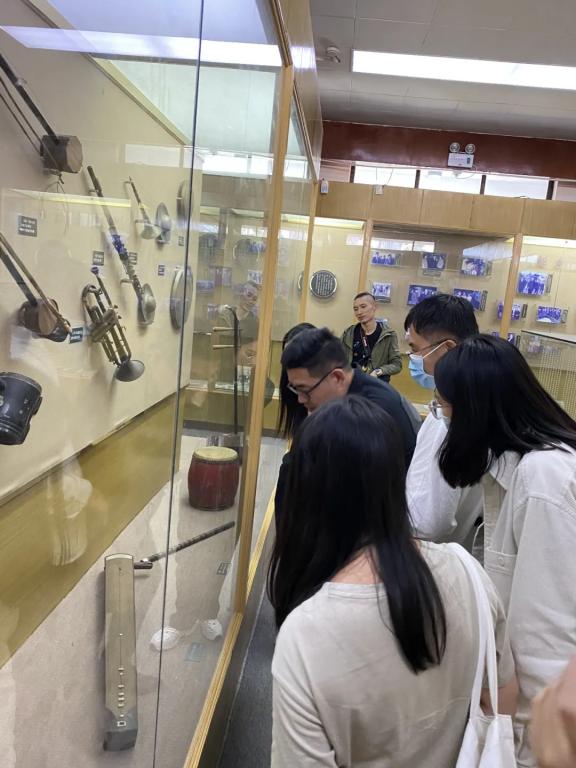 下午1时,采风团队到达此行第一站,嵊州越剧博物馆。在赵玉卿教授、徐文正教授、潘耘老师、李菲菲老师的带领下,同学们有序步入馆内,品味越剧特有的艺韵情怀,同学们零距离接触到了越剧详细的史料、珍贵的乐器、丰富的照片以及动情的乐曲。老师们在旁适时指点,解答同学们的疑惑并和同学们在一起热情的讨论,同学们学习到了许多在“象牙塔”内难以学习到的知识