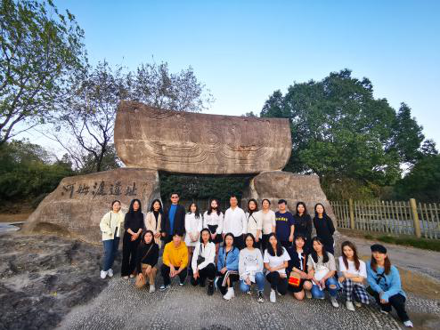 下午3点30分,采风团队一行抵达河姆渡遗址。在老师的带领下同学们参观了河姆渡遗址博物馆。河姆渡遗址博物馆以300余件文物精品为依托,配以模型、木雕、灯箱、蜡像、照片等展示了7000年前先民生产生活的内容和精神面貌,体现出先民的勤劳和聪明睿智。
