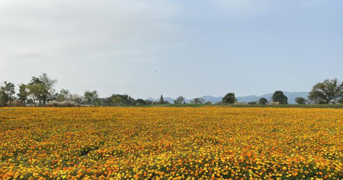 自古逢秋悲寂寥,但是良渚遗址的秋天却“胜似春朝”。漫山遍野的小菊花肆无忌惮的盛放,大有摧枯拉朽之势。一剁剁稻茬暗示秋收的喜悦,野鸽在稻田捡拾土地的馈赠,游览车上调皮孩子的叫喊声划破天际,野鸽四散奔逃。江南的秋天不像北方那般壮阔,她永远都保留着最后一份矜持与温柔,让远道而来的游客放缓脚步,尽情享受这难得的静谧时光。