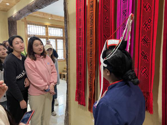 学习与采风团首先参观了“畲族博物馆”。同学们有序参观学习了畲族博物馆,在博物馆讲解员细致的讲解下,对景宁畲族的人口分布、民居、手工、饮食、宗祠族规、节庆、音乐、舞蹈等背景知识都有了非常细致的了解,对深入景宁民间采风打下了良好的基础。