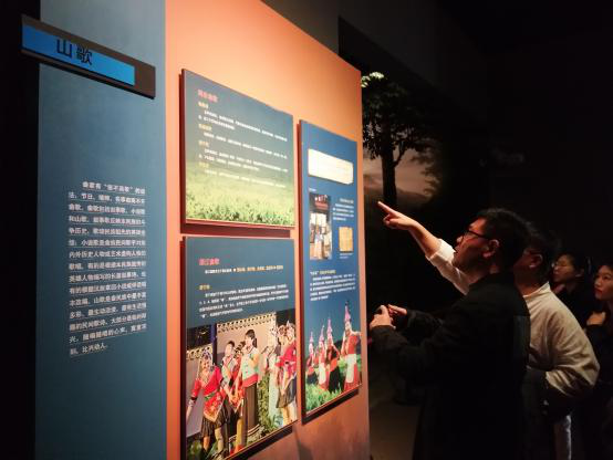 师生们的注意,那就是畲族的传统音乐版块。在这一板块中详细介绍了畲歌、畲族鼓吹音乐、畲族舞蹈音乐、畲族史诗等内容。畲歌包括叙事歌、小说歌和山歌。叙事歌反映畲族的斗争历史,歌颂民族祖先的英雄业绩;小说歌是畲族民间歌手对族内外历史人物的歌唱;山歌是畲民族中最丰富多彩、生动活泼、最有生活情趣的民间诗歌,大部分是临时即兴,随编随唱的心声,寓意深刻比兴动人。鼓吹音乐是畲族村庄内鼓吹班演奏的音乐,鼓吹班一般为28人,曲牌与汉族相同。大吹时由唢呐和打击乐锣、鼓、钹、板等;小吹有唢呐、笛子、京胡、二胡等。“落地花”“宫兰花”等都是畲族优秀的民族鼓吹乐曲。