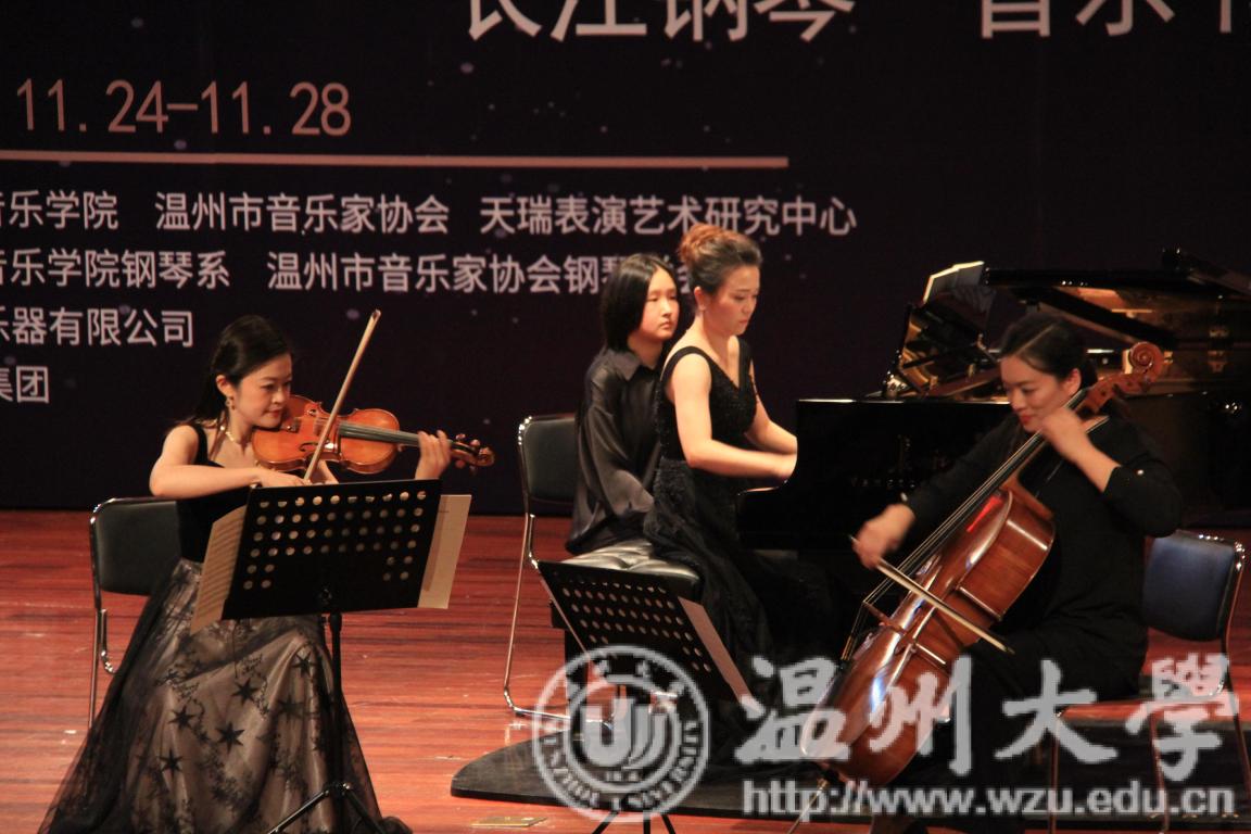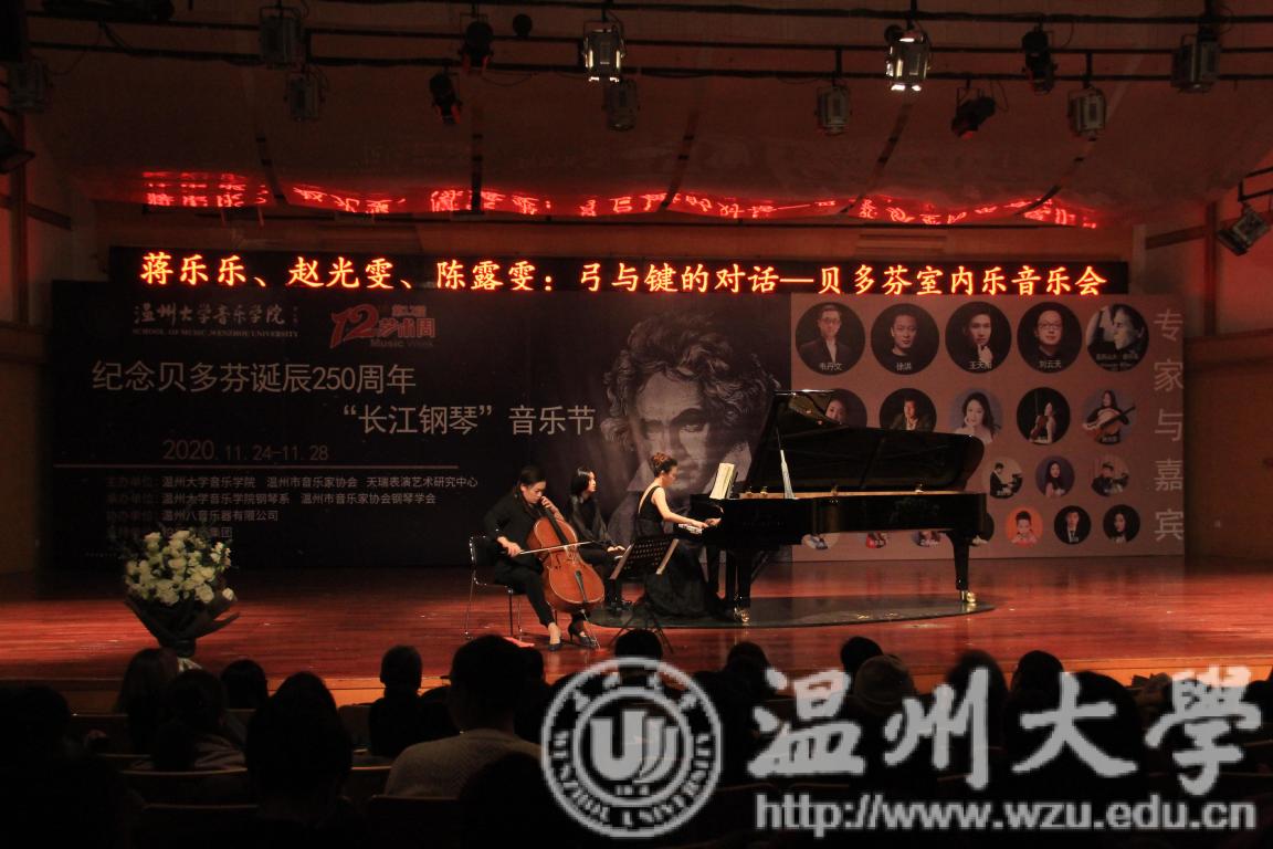 陈露雯博士,蒋乐乐博士和赵光雯博士一同演出。第一首由陈露雯博士和蒋乐乐博士演奏的《贝多芬a小调第四小提琴奏鸣曲,op.23》拉开了帷幕。这是一首贝多芬早期创作的二重奏曲目,典型的古典奏鸣曲快-慢-快三个乐章。听众能感受其强劲的艺术创造力和极为丰富的内心之声,让人久久不能平静。