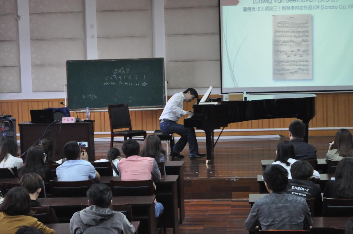 随后,他告诉学生们,作为一个好的一个演奏家是一个中间的角色,要把作者的写作原意放在首位,再在客观角度加上自己的idea。紧接着他进行了写作分析的讲授。让台下的学生们受益颇深。