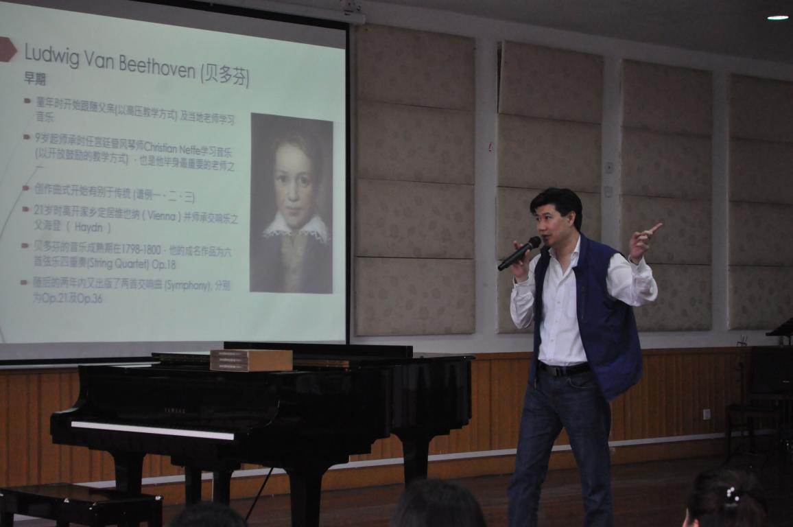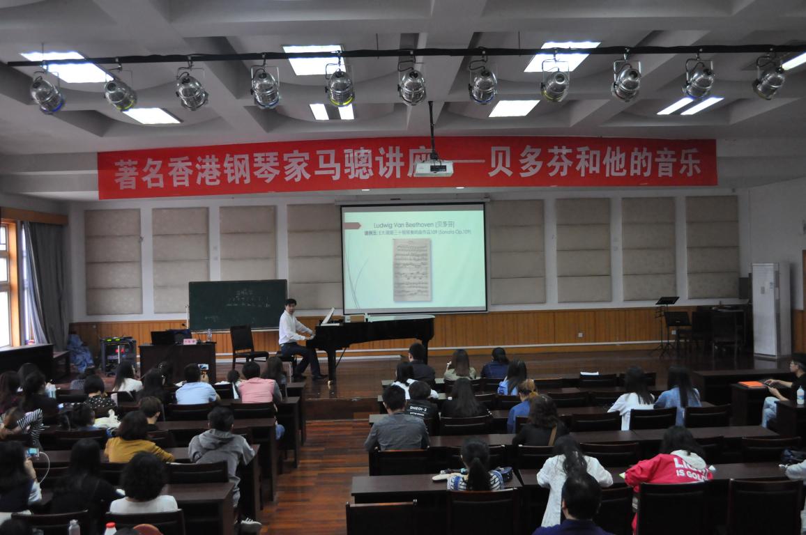 于201报告厅举办著名香港钢琴家马骢讲座――《贝多芬和他的音乐》。
