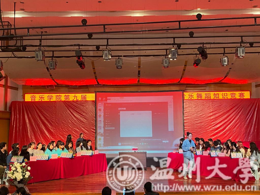 举行了第九届音乐舞蹈知识竞赛。我们邀请了邓深海、李葳、许天鸣三位老师前来主持并担任评委。赛前组织音院18~19级的八个班级的选手有序地抽取听辩题的抽选顺序,正式开始比赛前由各班上台来进行演练调试抢答器。主持人讲述规则,老师打开ppt让选手们了解答题规则的得分方式以及扣分方式。