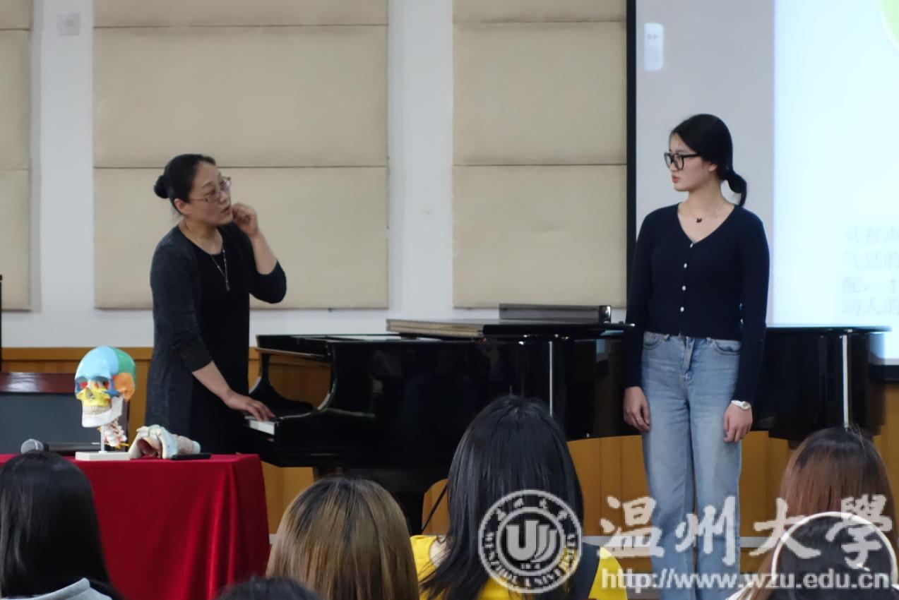 的王秀敏老师。18音表、19音教、19音表、20音乐学(师范)、20音乐学专升本(师范)班的同学和声乐系全体教师参加了本次讲座。讲座由叶文辉老师主持。