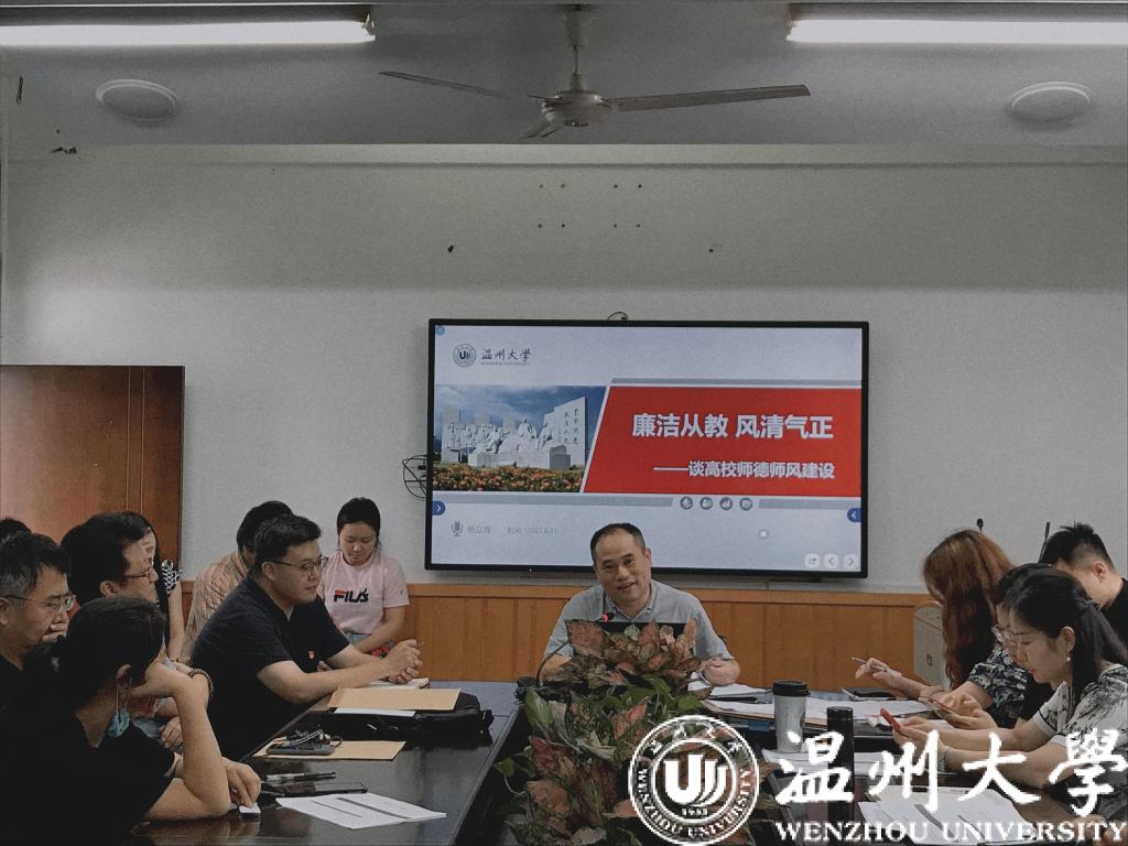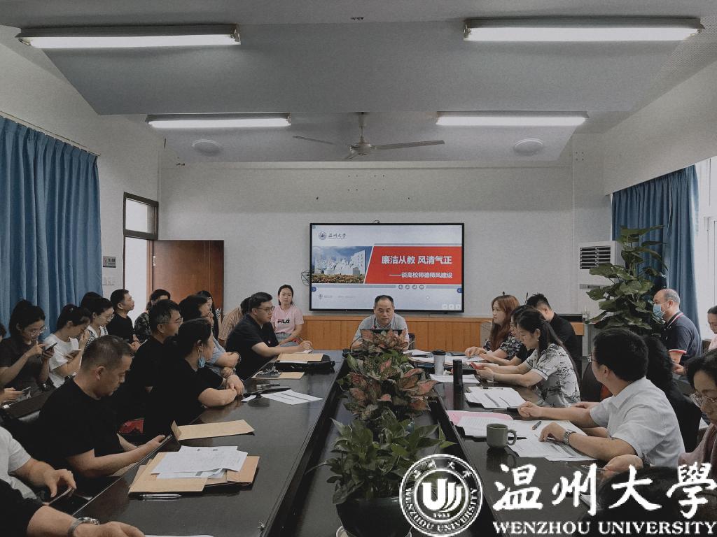校纪委副书记杨立淮作《廉洁从教 风清气正——谈高校师德师风建设》专题报告。杨书记从通报典型案例,晒出顽瘴痼疾导入,汇总了师德问题的三个代表类型,他指出学校无小事,处处是教育,教师无小节,处处是楷模。他从习近平总书记考察清华大学谈起,解读了习近平总书记的重要讲话精神,并从如何当好老师,从党和国家重视新时代教师队伍看师德师风,从全面从严治党和清廉学校建设看师德师风,引导教师为人师表,以身立教。从高校师德失范案例中汲取经验和教训,始终坚持把师德师风作为评价教师队伍素质的第一标准;强化典型榜样示范;划出底线这个雷池禁区。