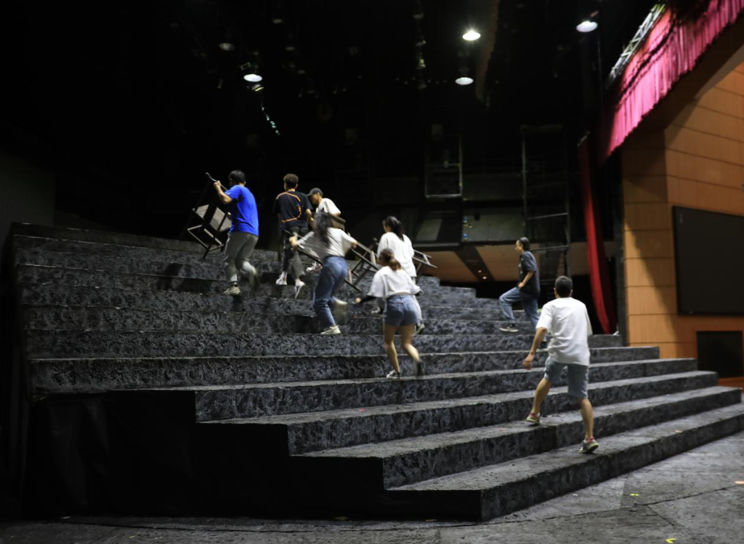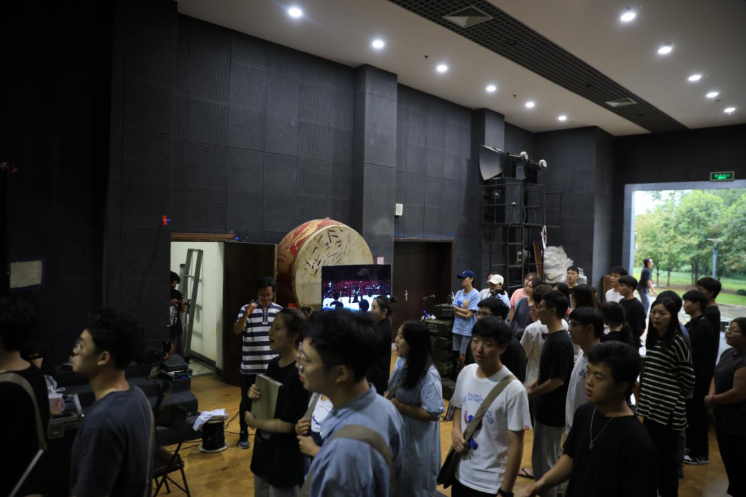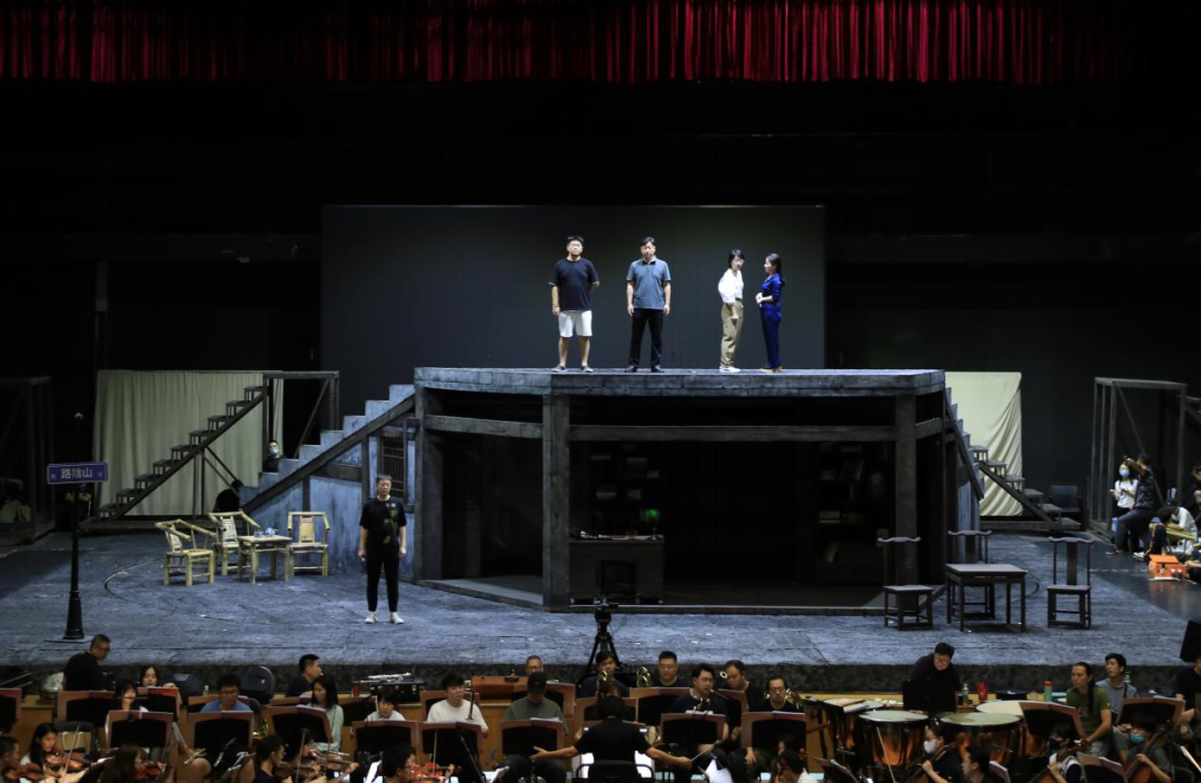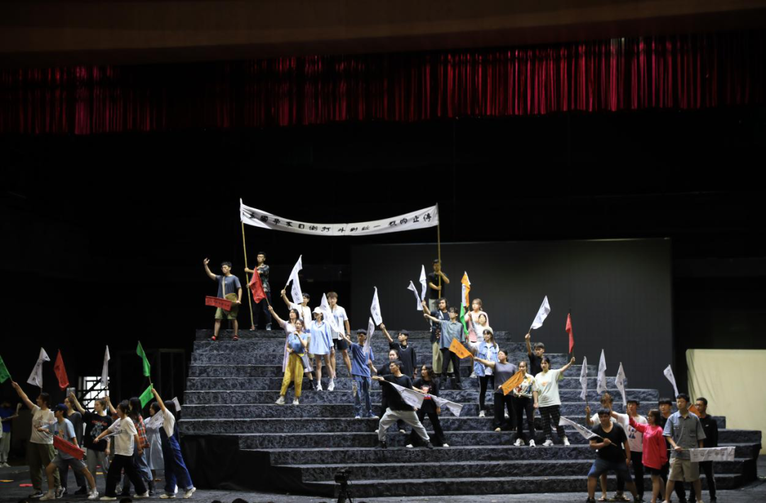 参演师生驻扎育英大礼堂,紧锣密鼓地排练节目,导演王湖泉教授现场坐阵指挥,力求以最好的状态展现温大风采。主演、群演、乐队通力合作,一遍又一遍地排练,揣摩人物心理和唱词动作调度。据了解,此次参加中国歌剧节时间紧、任务重,为了剧目更完美的呈现,剧组演职人员都在进行高强度地排练,哪怕是国庆假期,大家也都坚守在自己的工作岗位上为歌剧节全力以赴。大四的蓝展仪同学已是第三次参演《五星红旗》,“虽然正处于考编的关键时期,但收到通知后,我和室友毫不犹豫地就来了。这是一次非常难得的机会,演好《五星红旗》,弘扬国旗文化,不仅是我们的光荣更是使命。”蓝展仪说道。