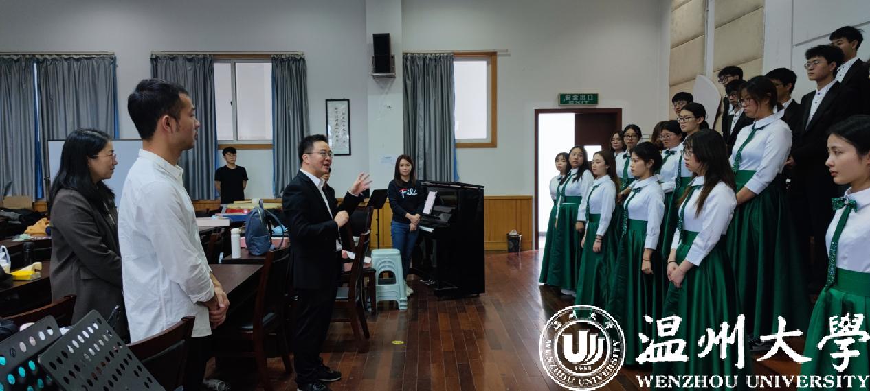 党委书记朱启鑫、党委副书记蔡晓武到音乐楼201排练厅,看望慰问正在备战2021年浙江省大学生艺术节声乐现场展演的19音教1班师生。