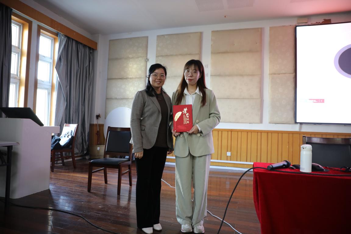 廖老师主要通过介绍她的追梦“三部曲”来向我们讲解本次讲座的主题——《聚点成线,声动百里乐相长》。第一部曲为“追梦合唱梦,研学促成功”。廖佳佳老师提到:机会是留给有准备的人,懂得随机应变,是每一个即将踏入教师行列的人必须具备的能力。廖老师通过观看视频的形式分享从教案例怎样把一节课上出特色。第二部曲为“追寻名师梦 智慧润芬芳”。廖老师指出“既然选择音乐就要干出名堂”,她通过让同学们进行聆听观看示例并且模仿跟学律动,现场的同学们也非常配合,通过这个互动让同学们更直观的感受到这种教学方法的有效性。紧接着,老师用数学中点线面的例子分享了她总结的经验。第三部曲为“声动百里,乐相长”。她认为可以通过一系列的活动,更快了解教师特长,同时促进青年教师自我思考。接着,她提出“基本功引航主旋律”这一观点,教师的基本功对于一个教师来说是最基础且必须要扎实掌握的,只有基本功扎实才能在此基础上发展延伸出更好的课堂教学。最后,廖老师对于专业成长这一方面提出了她的见解,即适路而行,幸福每一步。
