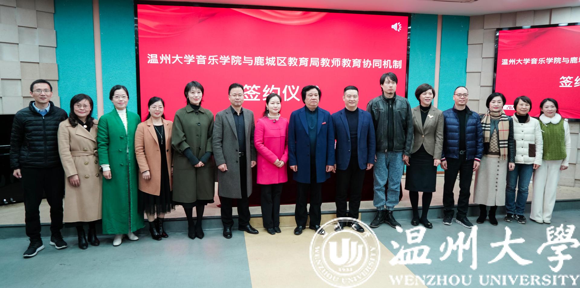 与鹿城区教育局签订了教师教育协同机制协议。双方携手创建“新师范”背景下的教师教育协作共同体,建立三位一体协同育人的模式,打通校地壁垒、知识与应用之间的藩篱,共同培养卓越的音乐教育工作者的师资力量,打造新时代高素养音乐教师队伍。