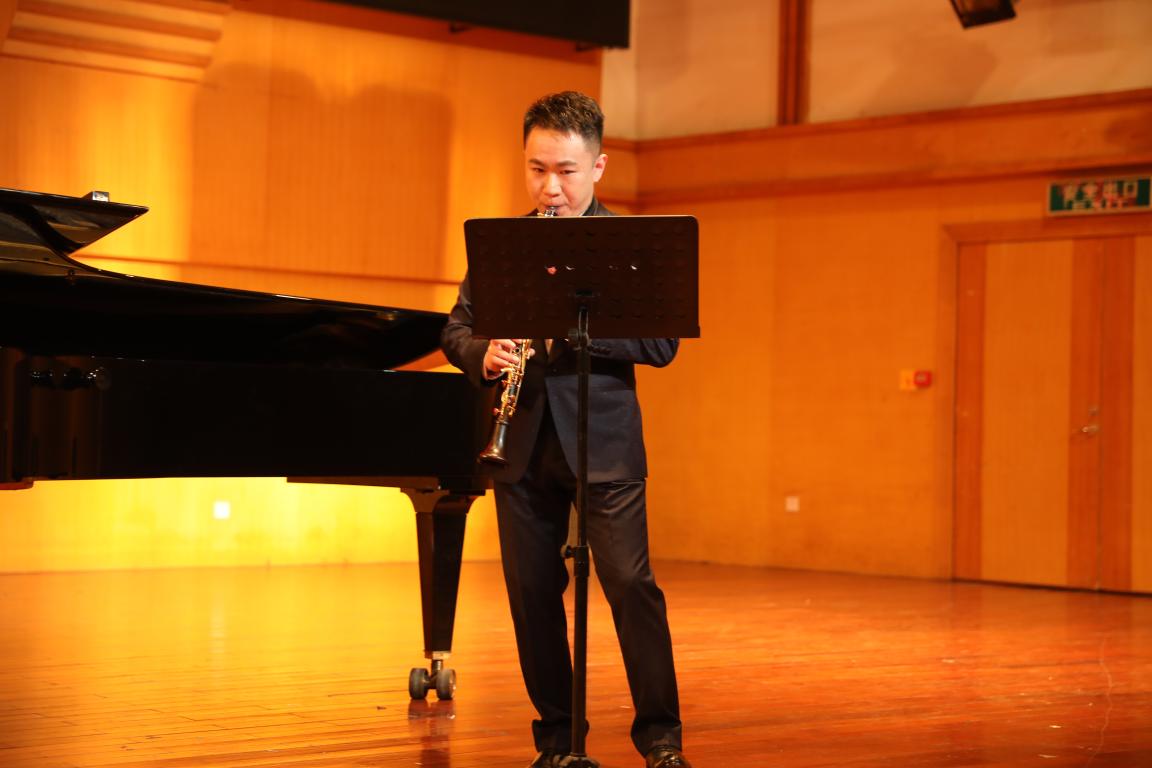 随着热烈的掌声响起,本次音乐会由三位老师共同演奏《Twin Clarinets》开场。歌曲欢快、轻巧,让音乐厅氛围一下就变得活跃起来。紧接着是由齐柯老师和陈露雯老师合作完成的《云雀》。单簧管悠扬婉转,钢琴铿锵有力,二者旋律缠绕交织,声声入耳,令人心潮澎湃。由蒋乐乐老师和陈露雯老师带来的《美丽的罗斯玛琳》,该曲采用轻盈幽雅的圆舞曲结构,生动形象地刻画了婀娜多姿的美丽少女罗斯玛琳。全曲旋律轻快,再加上钢琴和小提琴的合演,更加能够表现出罗斯玛琳的活泼可爱。