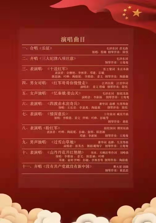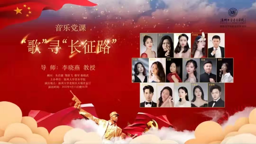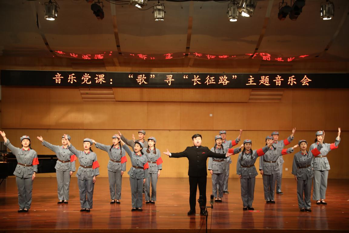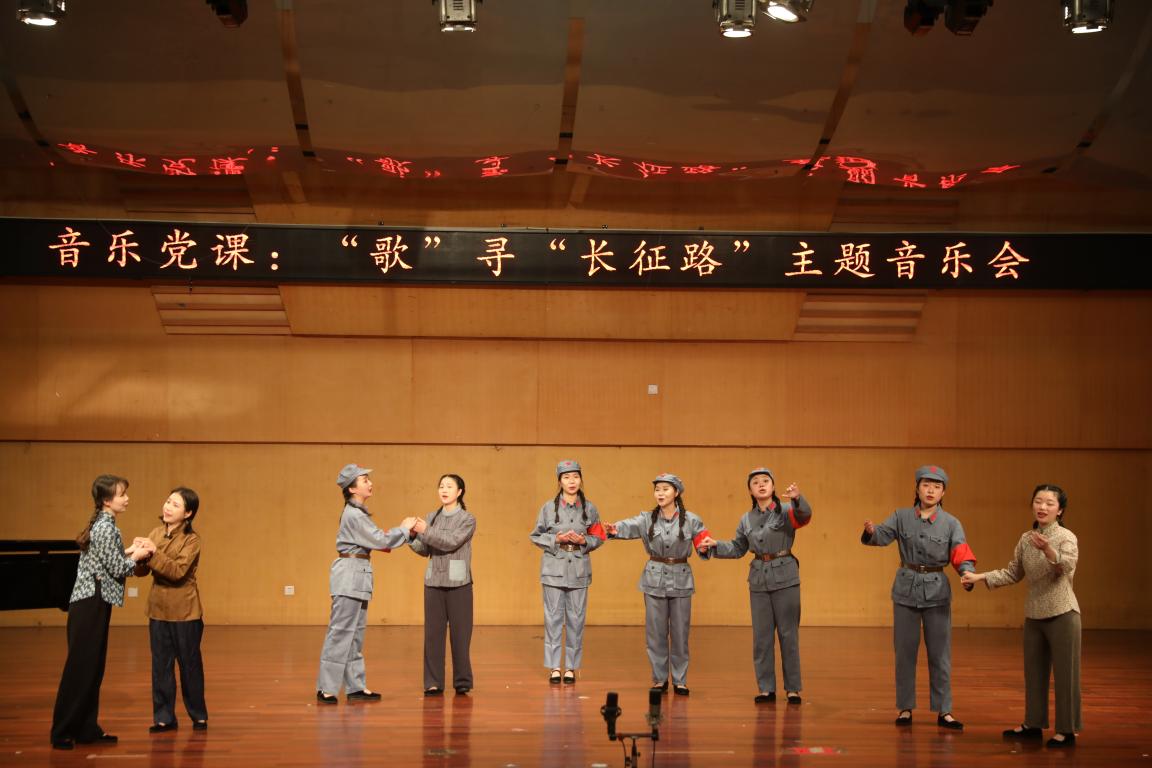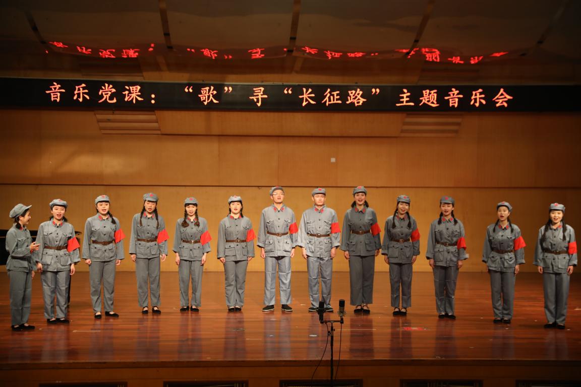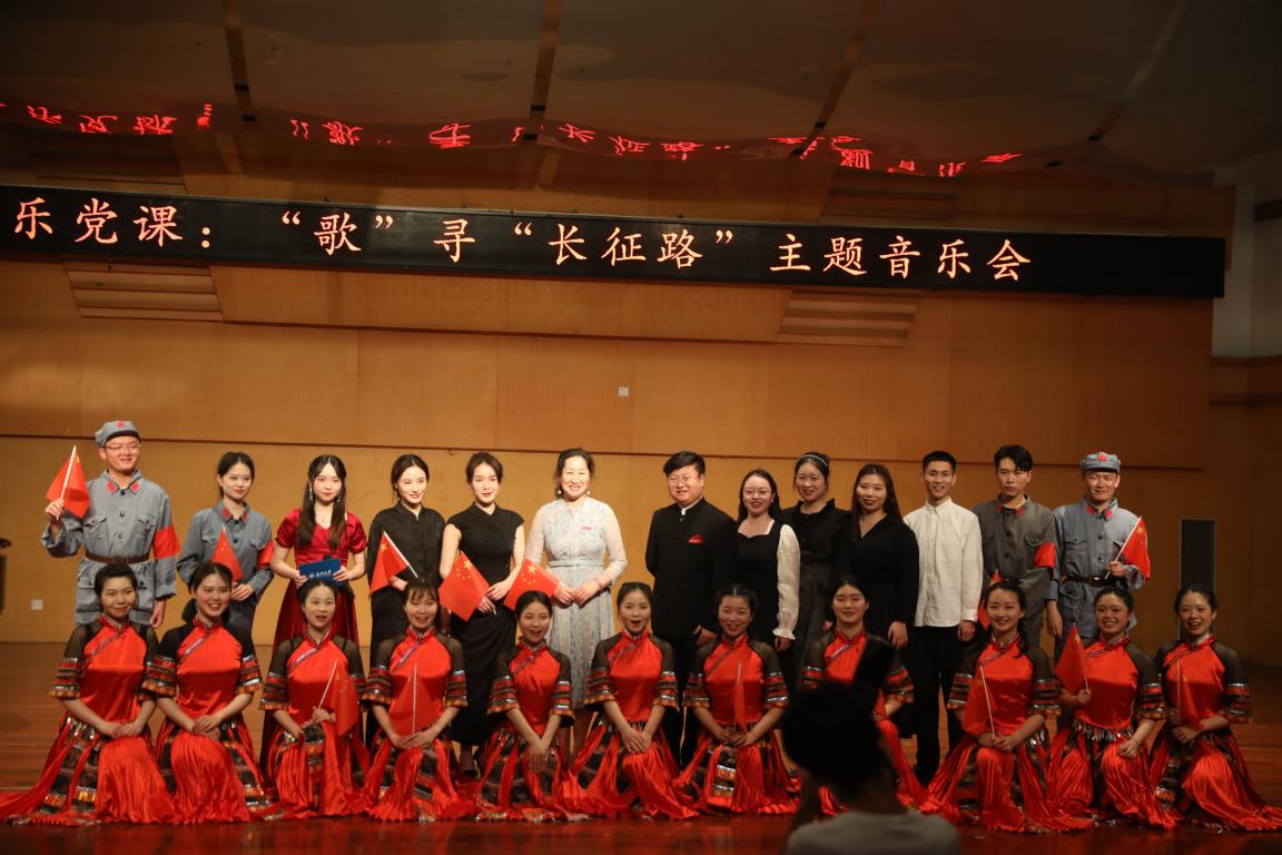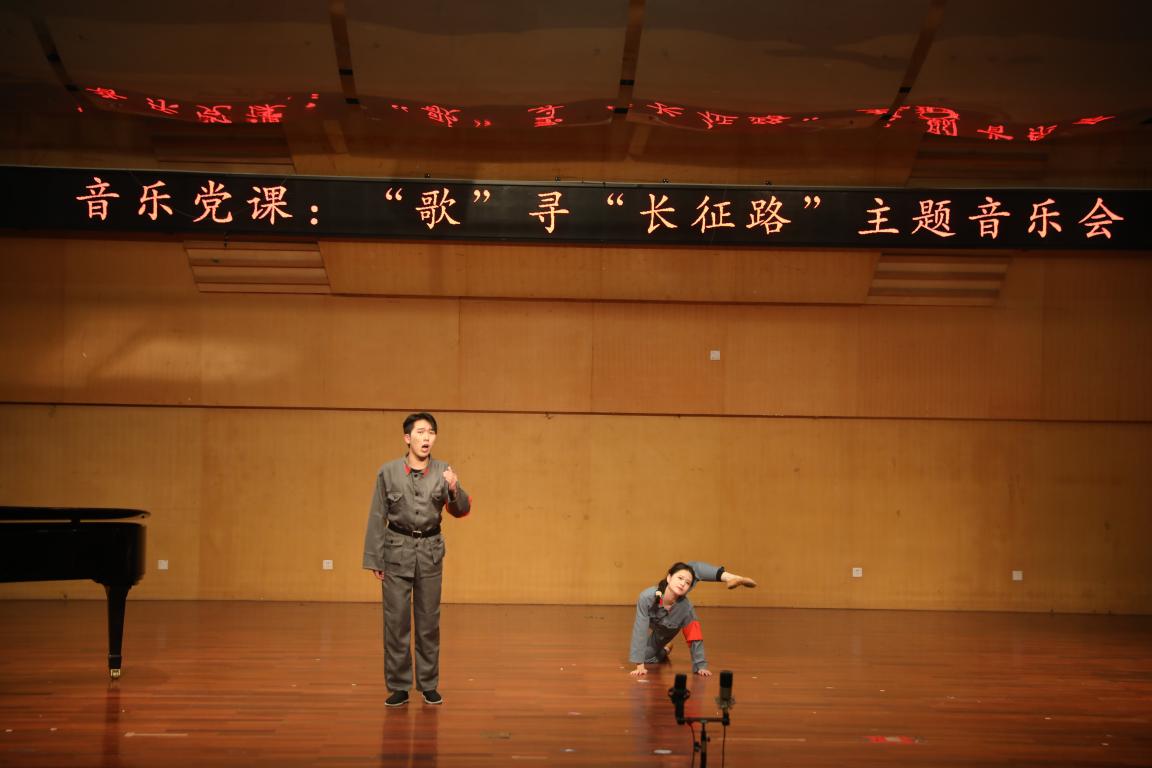 实践周活动中安排的一场音乐党课——“歌”寻“长征路”主题音乐会在老王论坛北校区天瑞音乐厅演出,吸引了不少师生。本次音乐党课由声乐系主任李晓燕教授策划、编排、指导,陈悦老师、陶晨薇、黄胜等同学担任钢琴伴奏。