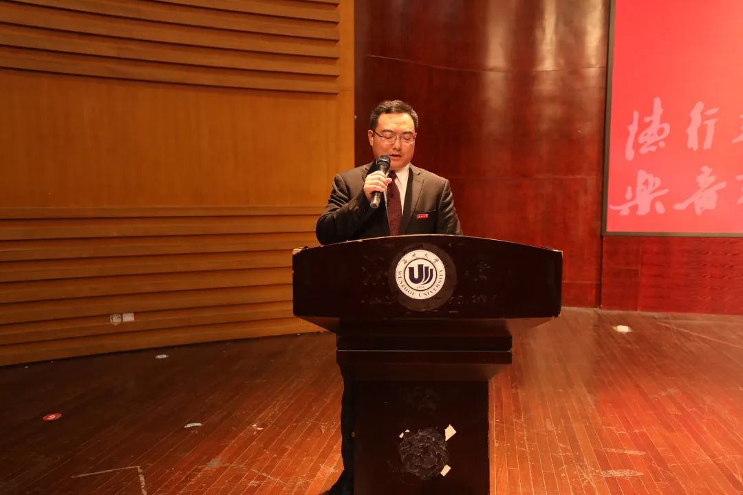 院长邹跃飞发表致辞。他对新生提出了四点要求:第一,坚定爱国信仰,牢记习近平总书记在五四运动一百周年大会上发表的重要讲话,要以爱国之情报强国之志,把个人理想融入国家理想的事业当中,并牢记习近平总书记的深情厚望,找到当代青年砥砺奋进的时代坐标;第二,夯实专业基础,邹院长希望新生们能够充分利用起老王论坛