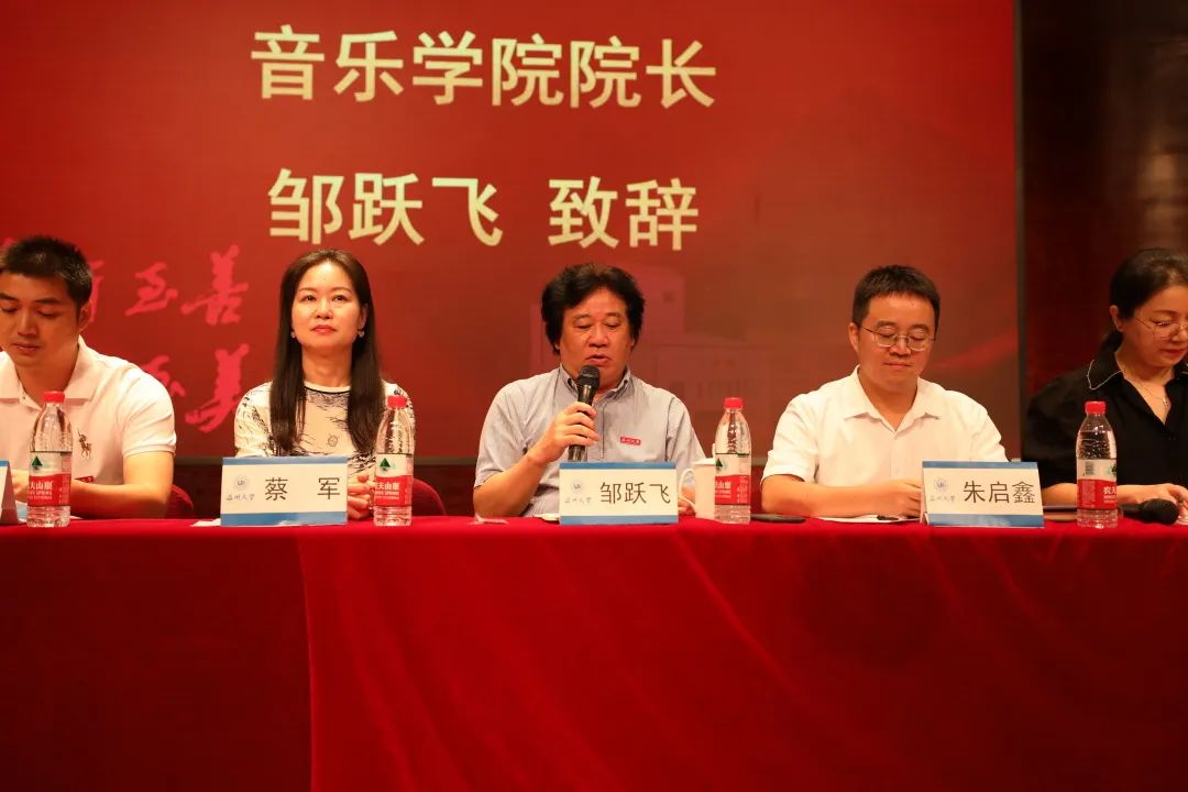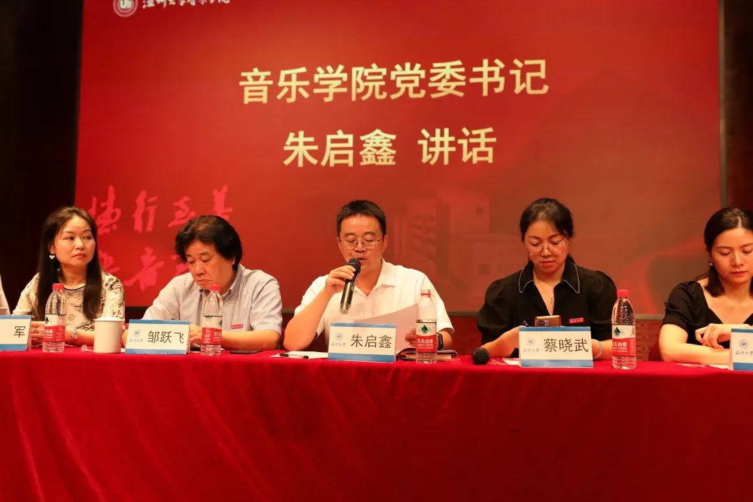 最后,院党委书记朱启鑫讲话。朱书记鼓励同学们在艺术道路上坚定理想信念,将艺术梦想与家国情怀紧密相连,提醒大家严格遵守国家的相关宗教政策,不得在校内进行传教,不得在校外参加宗教非法活动。希望同学们用党的科学理论武装自己,加强理想信念学习教育,树立正确的世界观、人生观、价值观。随后,朱书记抛出了三个问题。你是谁?你要到哪里去?你要成为什么样的人?朱启鑫书记强调,我们首先要认识自己,了解自己才会清楚自己想要的是什么。大学的目的不是得到面包,而是谁得到的面包味道更好。以学业为重是肯定的,同时纪律意识也要加强,规范自己的言行举止,这样子走到社会中才有立足之地。我们要在自律和规范之中成为自己想成为的人。
