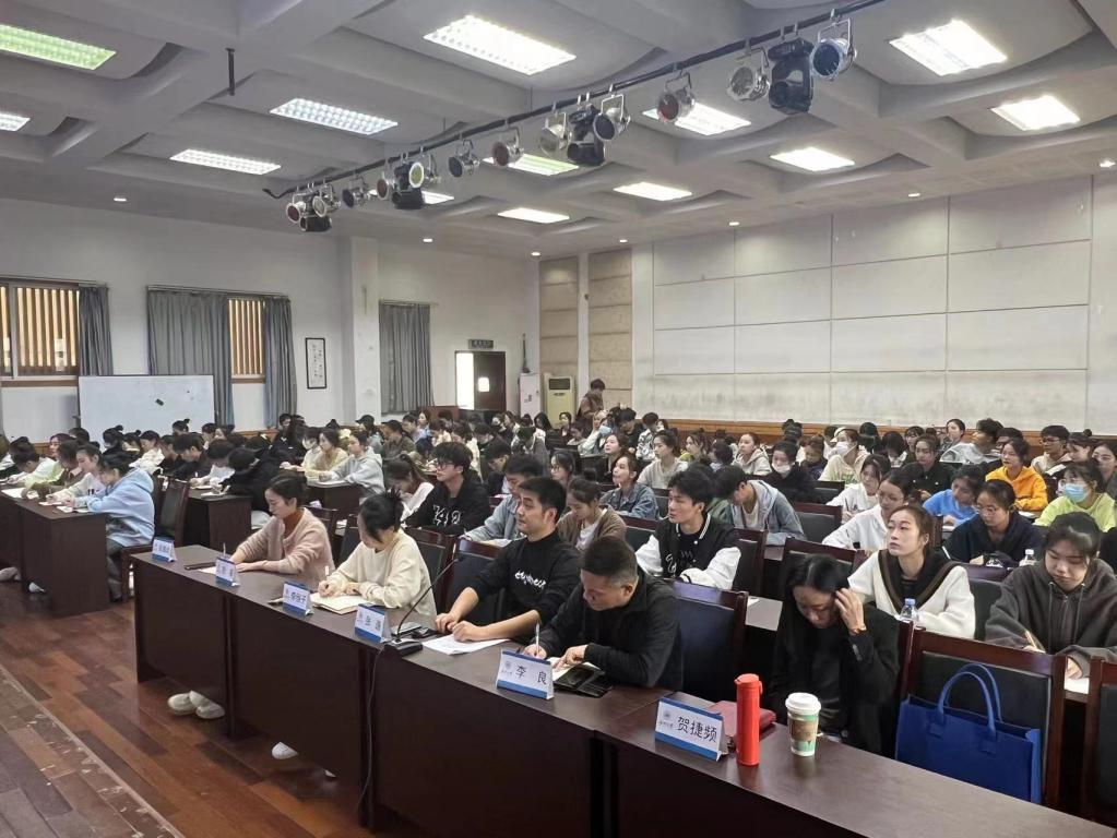 副院长张逸教授主持,以及全体舞蹈教师和21舞教、22舞教全体学生、22级音乐学(师范)、22级音乐学专升本(师范)班级同学参与其中。