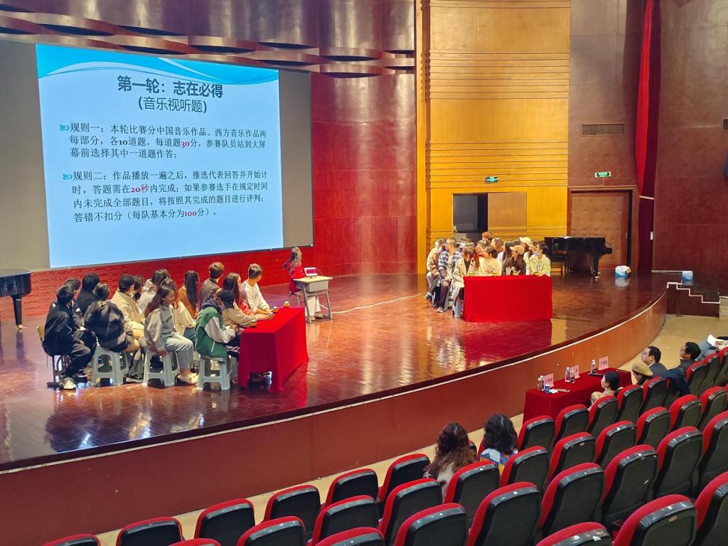 第十一届音乐知识竞赛在南校音乐厅举行。参与竞赛的人员有20级和21级音乐学(师范)专业的学生,评委有邓深海老师、李葳老师、郑梦娴老师、周励光老师。