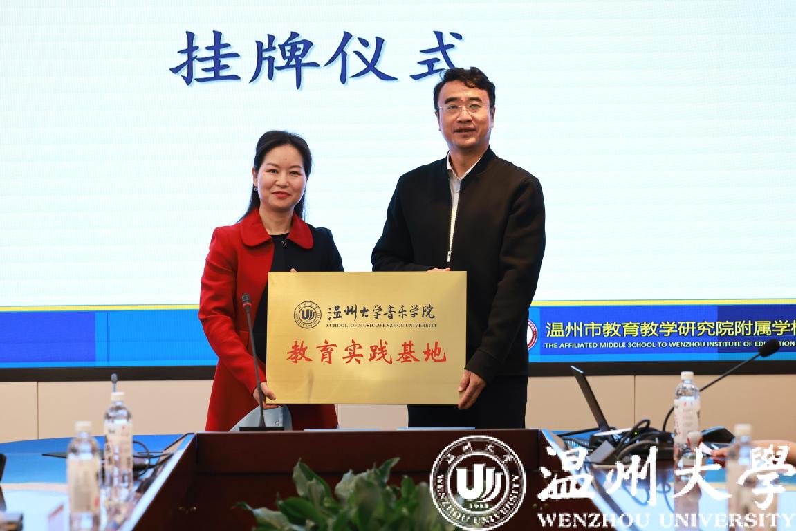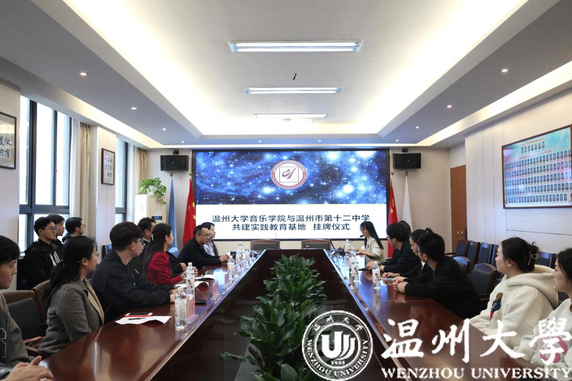 蔡军副院长与温州市第十二中王琦校长双方共同签署了教育实践基地合作协议并举行了揭牌仪式。
