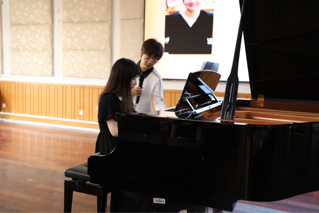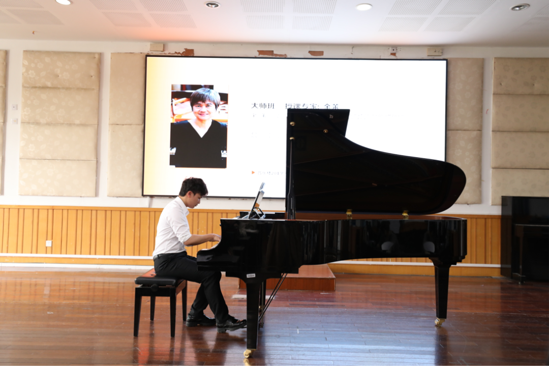 钢琴演奏硕士、中国音协钢琴学会会员、广东省音乐家协会会员、广东省钢琴学会会员、全国艺术水平考级考官——金莱教授的大师课。本场大师课中,教授分别为我校3名不同年级段的学生进行了一对一的钢琴演奏指导。