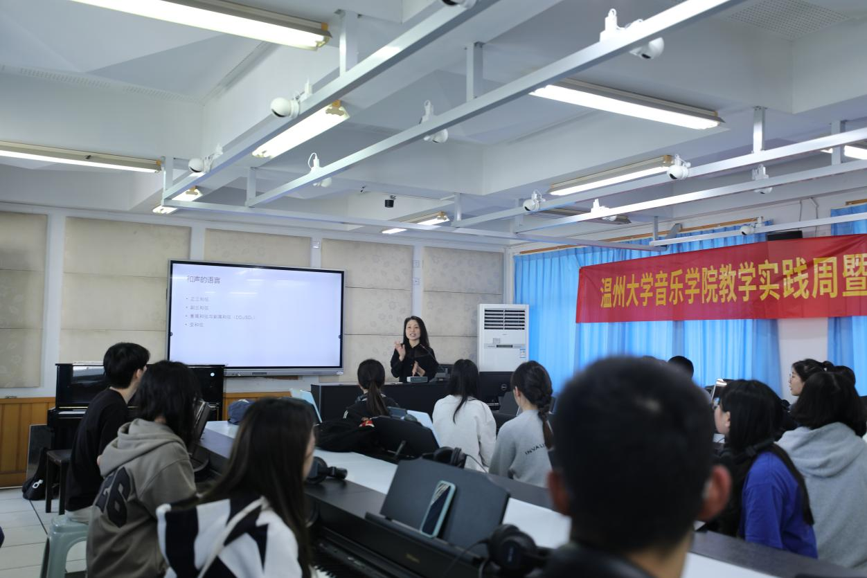 实践周期间的陈颖老师、陈露雯老师、许天鸣老师的“明心”教学示范课:《钢琴即兴伴奏》与《声乐演唱与教学》的,展示教师教学成果,通过明心示范课全面提升教师的专业化水平和创新能力,继而打造高水平、结构化教师教学创新团队。考研讲座中,钟芳芳老师与郑梦娴老师给同学们带来音乐学考研上岸秘诀,为大家答疑解惑,指出一条明路。张敏老师的朝鲜民族艺术歌曲诠释,打开了同学们对朝鲜艺术歌曲的全面认识。