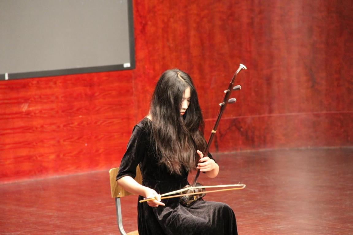 比赛伊始,后台等待的选手们都拉紧心中的弦,焦急等待着上台比赛。几位古筝专业的选手给我们留下了深刻的印象,古筝的曲调深厚、灵透、柔和,音韵较为明亮、清脆、含蓄,潇洒飘逸,纯朴古雅。它的空灵之声令人忆起那山谷的幽兰,高古之音仿佛御风在那彩云之际。还有琵琶乐器优美细腻,如同一朵娇艳的花朵般绽放,让人感受到生命的美好。多种乐器用美妙高亢的声音对抗,经过两个小时的激烈角逐,比赛结果也新鲜出炉: