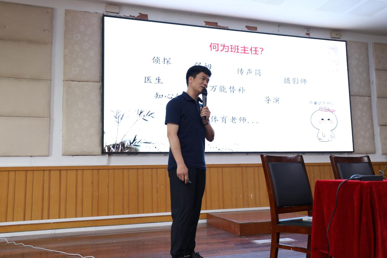 讲座开始前,叶老师对实习生进行调研并提出了“班主任是什么?怎么当班主任?怎么当好班主任?”这三个问题,并且围绕这三个问题进行解答。首先,叶老师对于班主任工作中所遇到的琐事进行了解析,强调班主任的“教育者”身份。在学生遇到问题时起到引导与权衡的作用。同时叶老师阐述了班主任“组织能力强,人脉关系广”的优点。