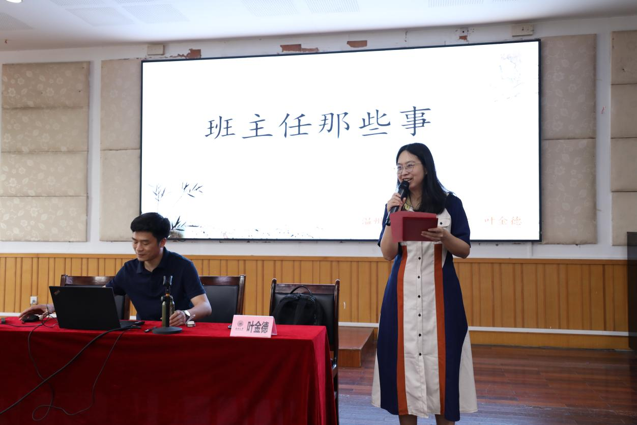 其次,叶老师讲解如何当好一名班主任。叶老师强调身为班主任要足够了解学生情况,注重学生的生理情况、心理情况、性格特点与家庭基本信息,与学生做好充分的沟通。在学生感到不适,焦虑的时候做好及时的疏导。挖掘学生的艺术特长,鼓励学生积极参与学校活动,做到因材施教。设置小组,促进小组之间同质,学生之间异质。同时班主任要合理规划班内职位协助班内管理,倡导学委要有自我思考意识,服务同学。
