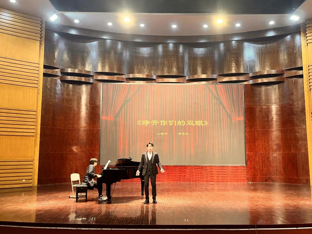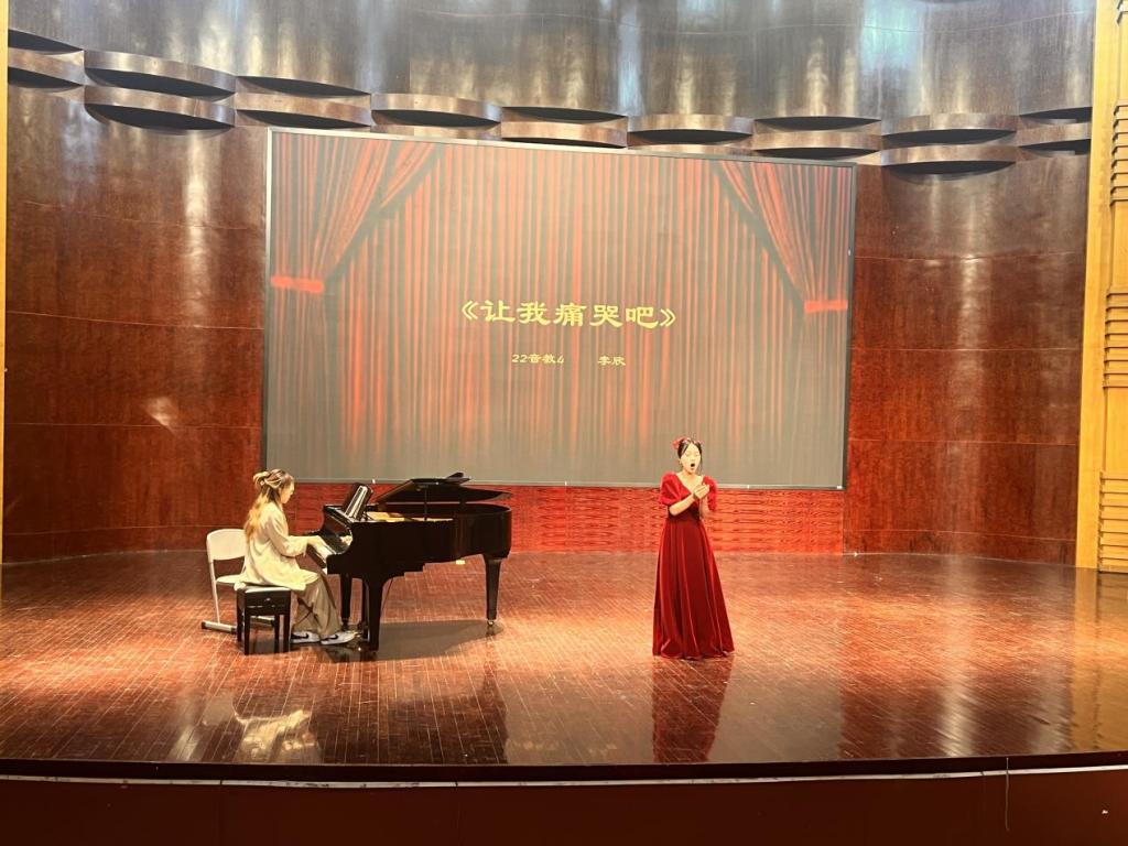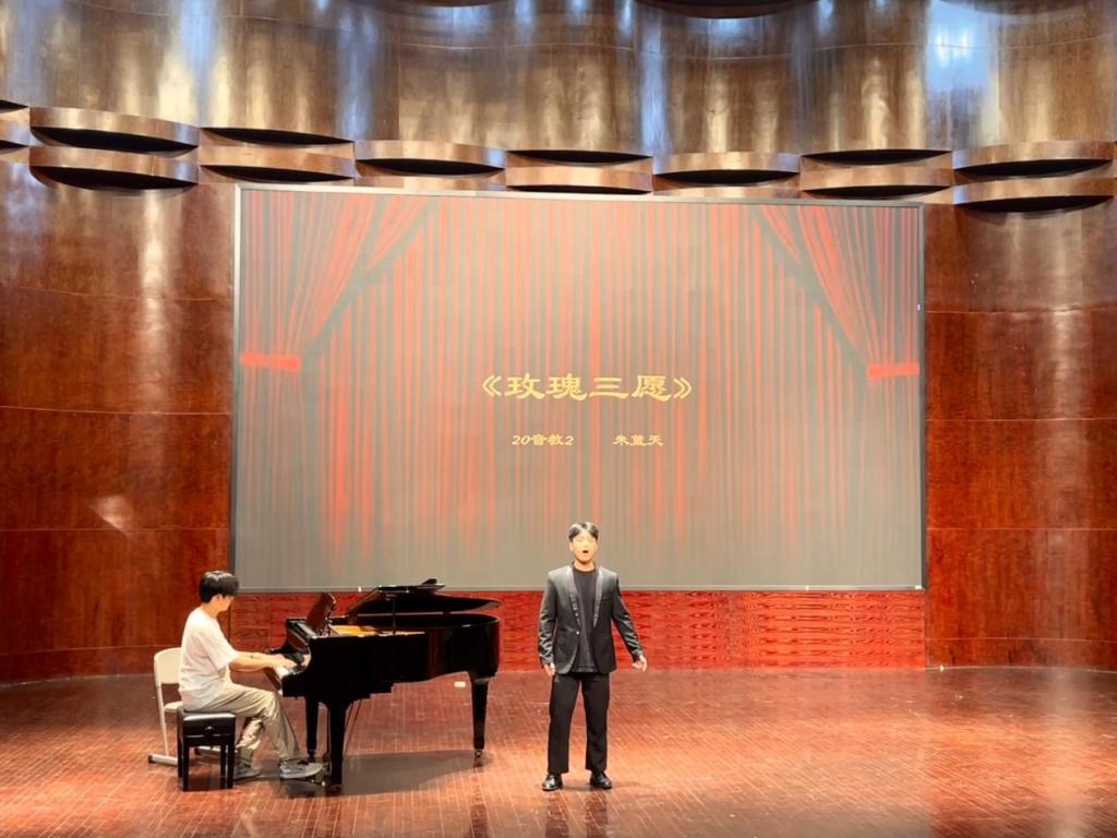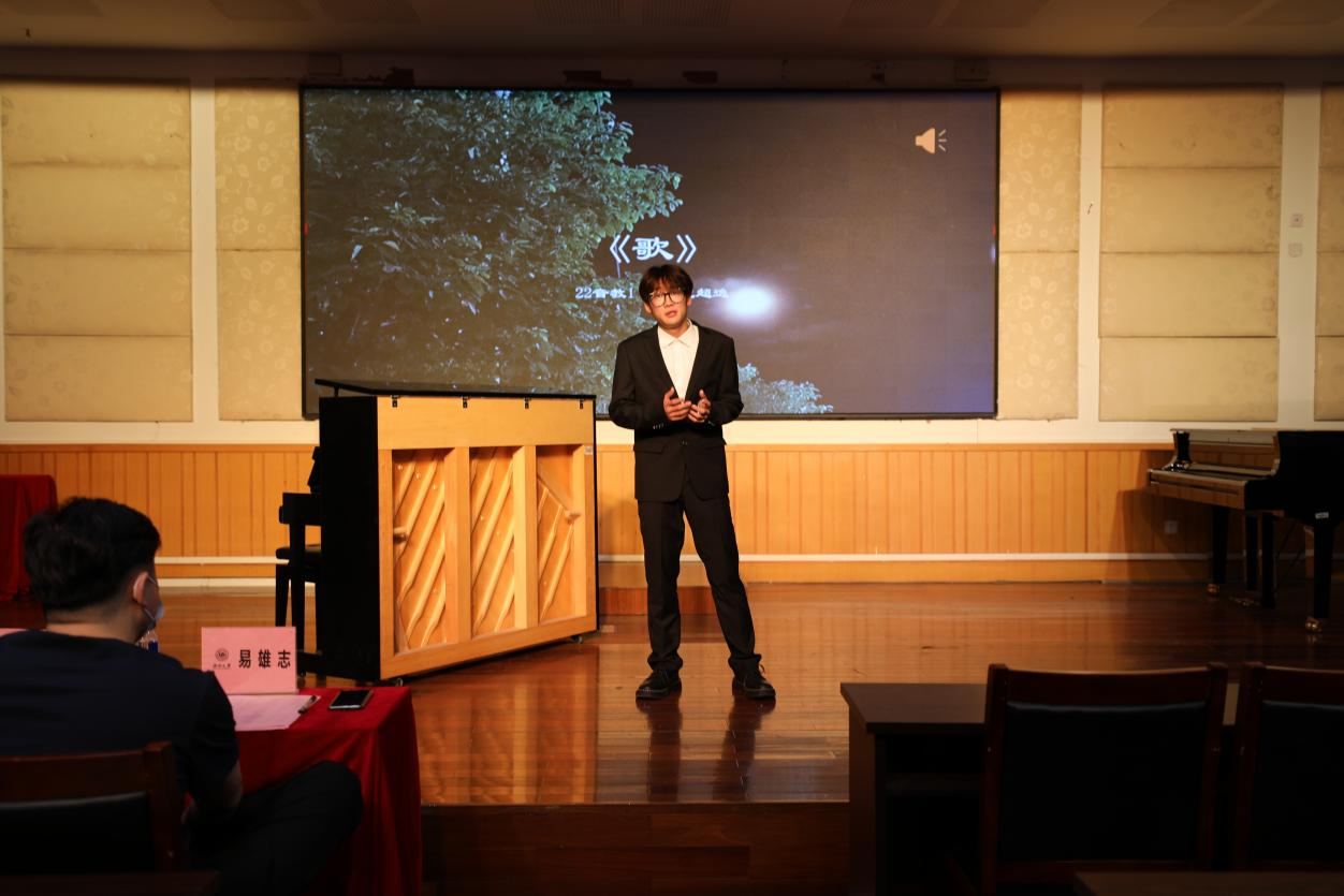 本次比赛分为民族组和美声组两组,首先进行比赛的民族组的选手,经过一轮的比赛,五名选手通过了民族组的初赛。紧接着是美声组的比赛,沈超逸同学在全场的期待中以一曲《歌》折服大家,激起全场的共鸣,由此比赛的竞争更加白热化,每一位选手都在此一展歌喉。
