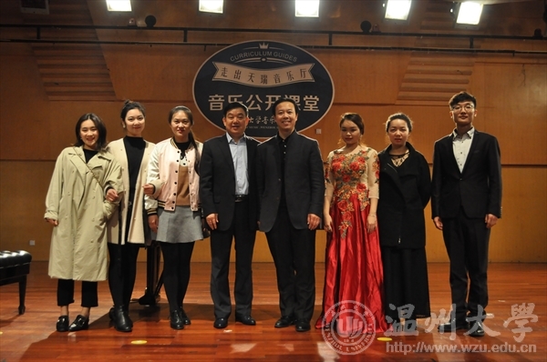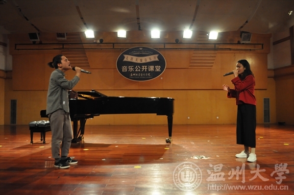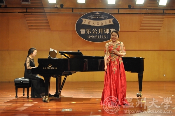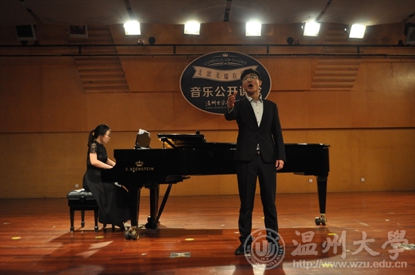 硕士生导师刘玉亭副教授主持讲演的音乐公开课堂“歌声悠扬”在天瑞音乐厅举行。刘老师演唱了《猜调》、《人说喜酒不醉人》、《小白菜》等歌曲。本科生奚若箐、刘仪杰、王怡欣及研究生王熙文、常惠雯分别演唱了《又唱浏阳河》、《中国大舞台》、《我等到花儿也谢了》、《一眼瞬间》、《暗香》、《桥》、《我的祖国妈妈》、《断桥遗梦》、《溜溜的竹排溜溜的漂》等歌曲,歌声萦绕于天瑞音乐厅,给观众留下了深刻的印象。