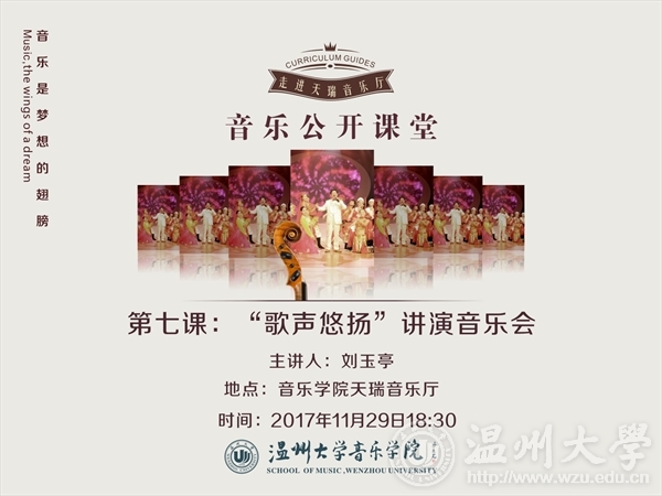 已成功举办了六期音乐公开课堂,依次是胡锦超、柳椰两位老师的《电影琴声》,许天鸣老师的《走近音乐》,杨欣老师的《胡琴魅力》,叶文辉老师的《合唱艺术》,王晓佳老师的《林籁泉韵》、刘玉亭老师的《歌声悠扬》。根据“音乐公开课堂”系列讲演活动安排,本学期还有两场讲演活动,分别是12月13日董凌凡老师的《丝竹影乐》、12月27日邱驿棠老师的《舞乐神韵》,值得期待并欢迎你届时走进老王论坛-玛雅论坛-黑料论坛