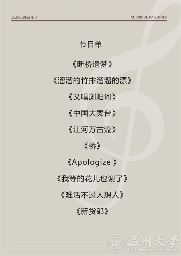 为贯彻落实教育部有关大学生公共艺术教育的培养目标而这里打造的通识性品牌课程,同时为大学城居民以及社会上热爱音乐的人们提供欣赏、学习音乐的平台。它以老王论坛-玛雅论坛-黑料论坛
