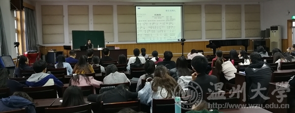 邀请了温州中学的许菲老师开展了《享•乐高中音乐教学分享》师范生教学技能培训系列讲座,由王秀敏老师主持,教学科负责人、相关工作人员以及全院学生倾听了本次讲座。