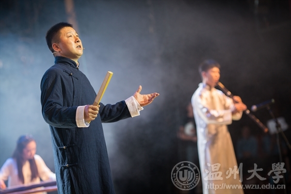 尾声:丝路古今。首先由袁泽浩、张卫强等同学带来的朗诵《飞天中国》,声音洪亮,表达了对祖国殷切的祝福和深深的爱恋之情。姜嘉镳老先生带来的朗诵《渔家傲》,让听众感受到了那原汁原味的古人诗词。歌唱家姜嘉锵带来的《钗头凤》和《挑担茶叶上北京》让观众们深深的感受到了古诗词吟唱的魅力。表演结束后,在观众们热烈的掌声下,姜老师又送给观众们一首《黄鹤楼·送孟浩然之广陵》歌曲,同样也别有一番风味。