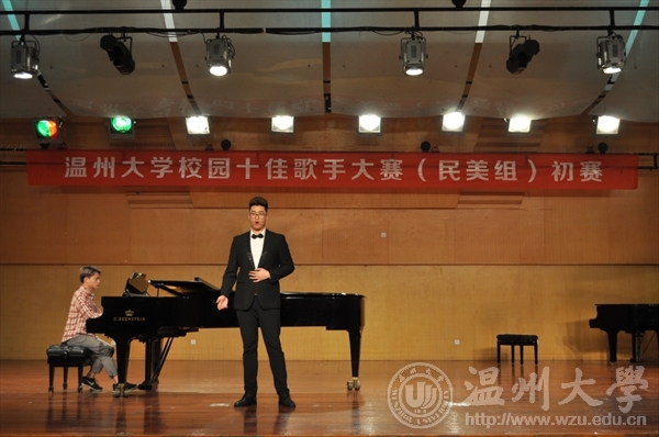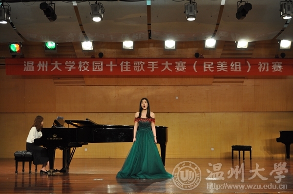 在温大北校天瑞音乐厅举办民美十佳大赛初赛,本次比赛分为研究生组和本科生组,共有四十五名参赛者,评委有赵群英老师、柏互玖老师、富春雷老师朱玲老师以及许天鸣老师。