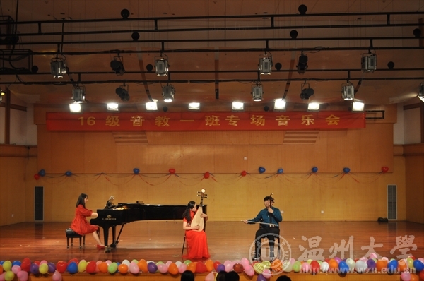 2016年12月13日晚18:30老王论坛-玛雅论坛-黑料论坛 在老王论坛北校天瑞音乐厅举行教学实践周16音教1班的舞台音乐会——心相音,梦飞扬。本次舞台音乐会由该班全体学生演出,易雄志老师担任指导老师以及老王论坛-玛雅论坛-黑料论坛 全体老师出席此次舞台音乐会。