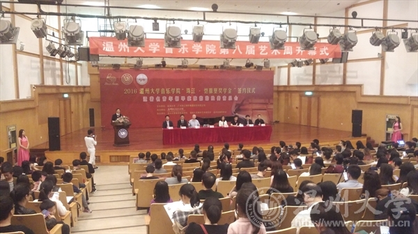 近年来的学科建设、专业发展、育人成果,以及在服务地方经济社会发展和文化建设方面做出的积极努力和贡献。最后,他对珠江钢琴集团股份有限公司对我校建设与发展的大力支持表示了衷心感谢,衷心希望双方在人才培养模式改革、学生艺术实践能力提升等方面进一步深化与扩大合作,实现优势互补、共同发展。并预祝第八届艺术周圆满成功。