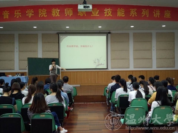 在音乐楼201室开展了教师技能系列讲座《说说“中小学音乐教师资格证考试”的那些事》。本次讲座由周晓秋老师进行讲解,学生应该如何深入音乐,做足课前功。参与本次讲座的分别有14、15、16级学生。