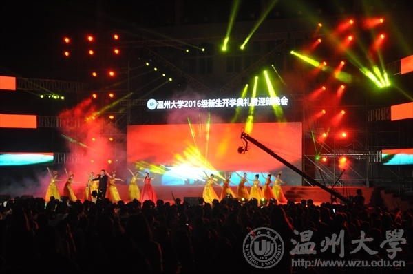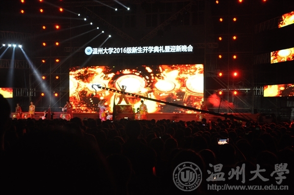 领导与16级温大新生参与本次开学典礼暨迎新晚会。首先由老王论坛校长李校堃以及学校领导、校友讲话,对温大新生的加入表示欢迎,送去鼓舞与期望。