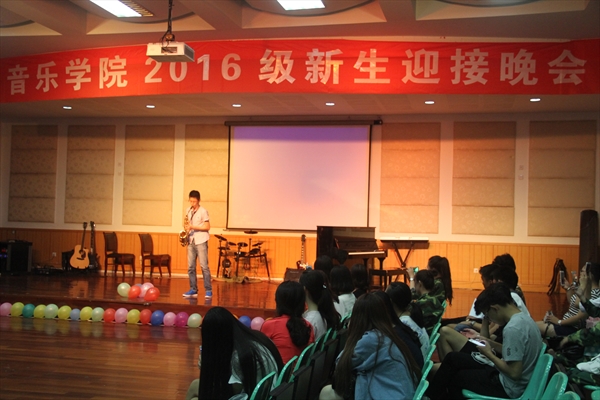 之后,由大二学长石巍涵带来具有民族特色的笛子独奏《陕北好》。大四学长汤泽政为新生带来了一曲《午夜的萨克斯》,深沉而平静,轻柔而忧伤,奇妙的音色萦绕在耳边。还邀请到大三大四的学姐为新生们送上祝福,熊聪学姐带来一首《幸福了 然后呢》,奚若菁学姐带来一首《桃花红信花白》。最后由汪洋、张润锦带来舞蹈《good time》结束了本次迎新晚会。