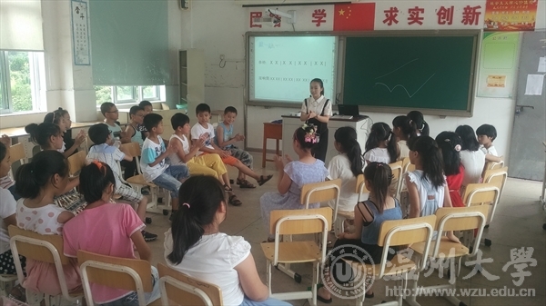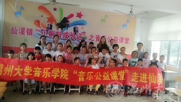 承办的“新青年下乡”系列活动之一。“新青年下乡”活动不仅让在校大学生深入基层、服务基层,同时也有利于大学生将所学所思运用到实践中去。在本次“新青年下乡”活动中,公益讲师们的优异表现也获得了乐清市仙溪镇小学教师的肯定,有一位同样主讲音乐课的老师说:“没想到现在的在校大学生都可以把音乐课上的这么好,这么棒了!”