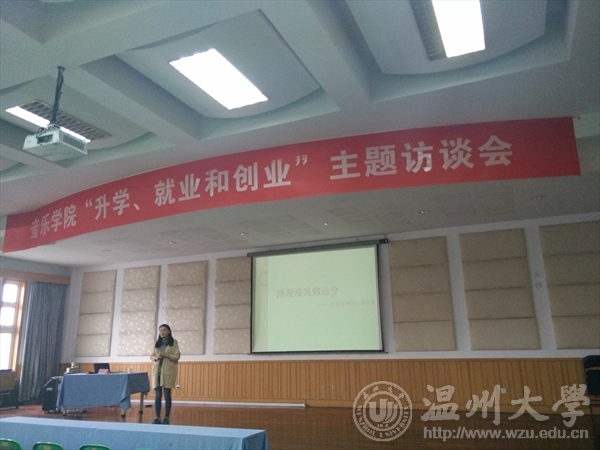 14级毕业生,现任教于温州市第二十三中学。首先缪老师以音乐师范专业毕业生的身份,对两年来的求职和工作的经历及感想做了总结,并对本科所在班级学生的就业情况做了详细调查,根据调查结果对现今的音乐类本科毕业生的就业形势做了较全面的分析;接着,缪老师就自己本科四年的学习生活经验为例,使同学们明确了自己的学习目标;最后,她从学习、生活两大方面将本科学习阶段的时间划分开来,建议同学们要充分利用时间,使学习效率最大化,尽可能提高自己的专业素养,为自己积累更多的经验,以充足的准备和信心从容迎接即将面临的严峻就业形势。(教务科供稿)