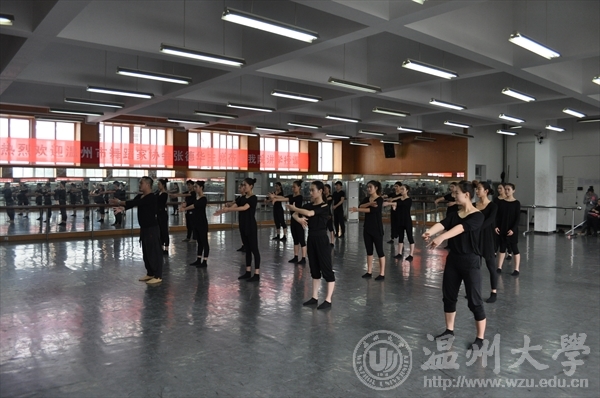 在二楼舞蹈厅,张藤榕老师开展了现代舞技术训练的公开教学。在本堂课张藤榕老师主要让学生巩固上节课的内容并教授新舞蹈动作。课堂刚开始,他首先让学生站于把杆前,通过音乐,闭目冥想并讲述自己想象的画面,让学生们去感受延伸。随后分组巩固上节课的内容,再指出学生的不足。最后张藤榕老师耐心的进行了示范并讲解了本堂课的重点与难点。