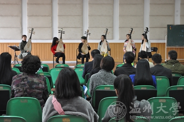 在音乐楼201,池玲珑老师也开展了琵琶课的公开教学。池玲珑老师主要讲述了初学者如何正确的,简单的学习琵琶,并通过教导她的一年级学生来进行这堂课。其内容大致讲述了弹琵琶的坐姿、抱姿、手姿及其定弦、勾弦、换把、五指轮等专业知识。学生配合讲述并示范演奏,池玲珑老师逐个进行了细心的指导。