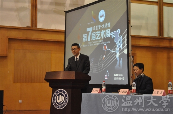 的厚望。身为温大学子,每个成员都应为温大做出自己的贡献。最后赵玉卿院长总结发言。他表示希望通过这一周的艺术活动使学生在这一周内学到更多的专业知识,充实自己,切实提升专业水平。此次开幕式也很荣幸的请到了中国艺术研究院的研究员秦序出席。在开幕式后,秦序研究员开展了题为:《郁郁乎文哉,吾从周——孔子为什么极力推崇西周礼乐文化》的学术讲座。