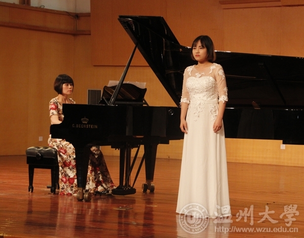 首先,她为我们介绍了她演奏的第一首作品,德彪西的《冥想曲》,精致新颖的和声,调式音阶与大小调的结合,七和弦平行倾向的初露头角,尤其是漫长乐句在开阔音域中展开,分解和弦与柱式和弦-四连音与六连音在和声与节奏两方面的对峙,都使这首小曲产生动人的魅力。叙事曲表现出对新颖音响的追求始终是青年德彪西追求的主要目标。为相同的简单动机配置不同和声变奏,突然的色彩转换透露光线的多变,属九-属十一-属十三结构的频繁使用,数层不同节奏比率节奏元素的复合,都表明德彪西不断在寻找唯独属于他自己的独特音乐语汇。老师动人的演奏获得了观众发自内心的掌声。第二首福雷的《爱之梦》艺术歌曲,这首曲子像一首诗。法国的艺术歌曲就是诗和音乐的综合,诗诗诗人用心写出来的,它有它内在的气质和意境,阮辛怡柔顺的转调、色彩缤纷的效果,优美的旋律线,纯音乐的美感都展现了出来,是观众陷入这种诗的意境,久久不能回神。第三首福雷的《即兴曲op.34》 ,阮辛怡细心的为我们介绍福雷,并讲解福雷一生共创作了六首即兴曲,采用音乐综合分析的研究方法,从福雷的生平、时代背景、即兴曲的发展、文本形式分析等角度对其进行解读。认为该曲不仅具有典型的福雷个人风格,还具有浓厚的浪漫主义气质和法国特有的沙龙情怀。通过作品分析,对教学此曲时提出建议,需注意音色的优雅表达、rubato的灵活运用和踏板的增色作用。这样观众更加深刻的了解和认识这首曲子和作家。第四首是德彪西的《月光》,她用朦胧的旋律勾勒出迷人的月光,典雅、含蓄,妙不可言。让观众身临其境,仿佛一层月光洒在身上,仿佛静的呼吸声都可以听到。第五首是德彪西的《阿拉伯风格两首》,他对传统音乐作了许多大胆革新。之所以只有他敢这样做,也许是因为任何一个音乐家都不曾有过他这样的一双敏锐的耳朵:德彪西实际上比一般人听得见更多的泛音他的旋律听起来同任何过去的音乐都不一样,而他的和弦就更加奇怪。德彪西正是运用了他所偏爱的全音音阶,构筑起他与众不同的“梦幻世界”。而阮辛怡的演奏将我们带入了这个世界。第六首和第七首都是拉威尔的作品,拉威尔的这首作品既没有完全摆脱传统,又具备了印象主义音乐的主要特征,其音乐结构是古典结构和革新结构的完美结合。他秉承着继承与创新的态度,对传统作曲技法进行再发展,创造性的运用了古典奏鸣曲式。《水之嬉戏》是拉威尔早期创作的具有标志性的重要作品,是其印象主义音乐风格的首部作品,在钢琴艺术音乐史上具有里程碑的意义。 这首描写水的作品,通过奇幻多变的音响效果及高超的演奏技巧塑造出水的各种形态,如喷泉、瀑布、溪流的音乐形象。第八首是米约的《儿童组曲》,米约是一位多产的作曲家,他的观点影响了一代法国作曲家。这首作品由嘉宾四手联弹演奏,两位小嘉宾用娴熟的演奏技巧完美的演绎了这首曲子,赢得了观众的惊叹,不得不佩服。最后一首是米约的《胆小鬼》,由阮辛怡与她的学生,施曦婷、王驰婷、白以诺共同演奏。这一钢琴演奏形式,结合两位演奏者的演奏,体现表达一部音乐作品的内涵,这对演奏者提出了更高的要求,两位演奏者不仅要有心灵上的高度默契,而且要对所演奏作品所要表达的主题、内涵等达成共识,以便更好的完成作品的演绎。米约在音乐创作方面一直都是一位大胆的创新者,习惯于选择适合自己音乐情感的音乐表达结构,这也与其受新古典主义的影响有关,在创作中更加灵活自由,不受古典音乐创作结构的束缚,利用出人意料的情感表达冲动去代替音乐的规律性,给听者以强烈的听觉刺激。