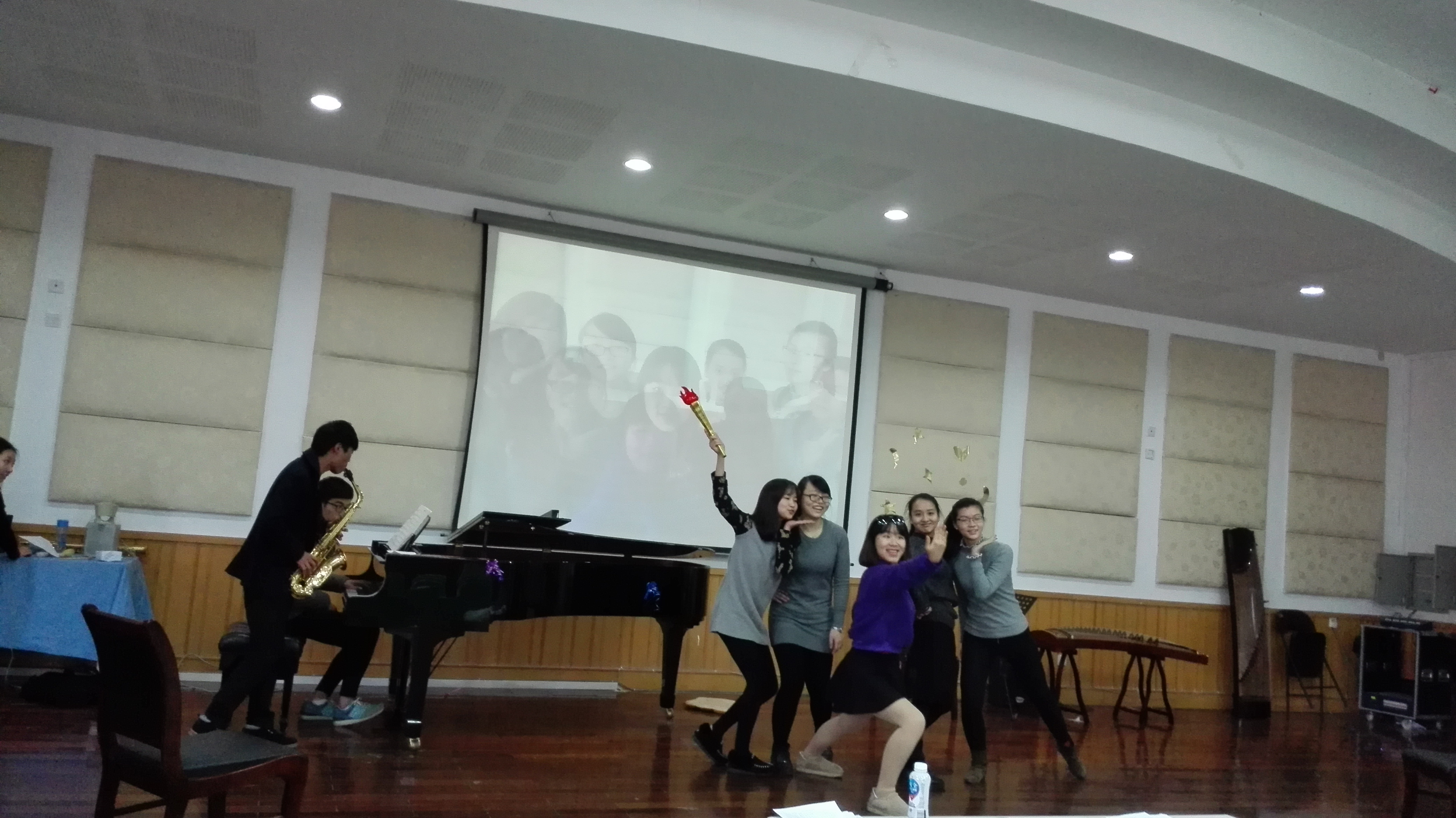 音乐教学法的李葳老师本学期对课程进行了很大的调整,在实践中检测学生对新课程标准的理解以及对国外音乐教学法的应用。此次考试改革,是李老师“翻转课堂——以生为本”理念的初步尝试,也是她校级教改课题“校内外一体化《音乐教学法》课程的创新与实践”的有益探索,旨在通过学生的分组音乐戏剧化的初步尝试,极大发挥学生的主动性和创新型,体现中小学音乐课程标准“实践性、人文性、审美性”的性质和“强调音乐实践,鼓励音乐创造”的理念。李老师刚开始在11音本班进行了初步尝试,通过分组创编小型音乐戏剧的形式,融奥尔夫、柯达伊、达尔克罗兹教学法为一体,让学生用语言、歌声、乐器、律动、声势等方式表现受到学生的欢迎。冷奇、周丽雅、陈明东等人充分发挥了自己的声乐、吉他特长,表现了异国公主在人间的奇闻趣事,其中对一些经典旋律的歌唱改编更是让人耳目一新。之后,在另几个班级,李老师更加将评价方式具体化,通过剧情、表演、声势、律动、歌唱、乐器、原创、整体性等几个方面作为评分标准,并尝试采用各组组长负责的方式考试。学生的积极性很高,节目异常精彩,如12音本陈洁等人表演的《ROSE的奇幻之旅》借助大学毕业生ROSE在各地旅行的经历,了解人生百态,学生们利用PPT制造了不同国家不同地方的背景,还有原创音乐的加入,剧情笑点不断,让大家耳目一新。而《灰姑娘新传》《白蛇后传》等节目,吴诗妮、朱虹、吴越同学的精彩演出可圈可点,很具有表演潜质。12音表的《新中国好声音》借助了创编演唱、民乐伴奏、舞美设计等方式让人印象深刻。还有13音教的《葫芦娃传奇》《白雪公主新传》《雷锋日活动》剧情跌宕起伏,让人捧腹大笑。