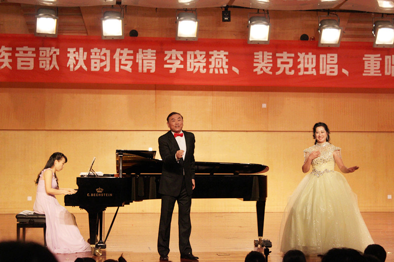主办,于老王论坛北校天瑞音乐厅演出的裴克、李晓燕中国民歌独唱、重唱音乐会隆重拉开帷幕。
