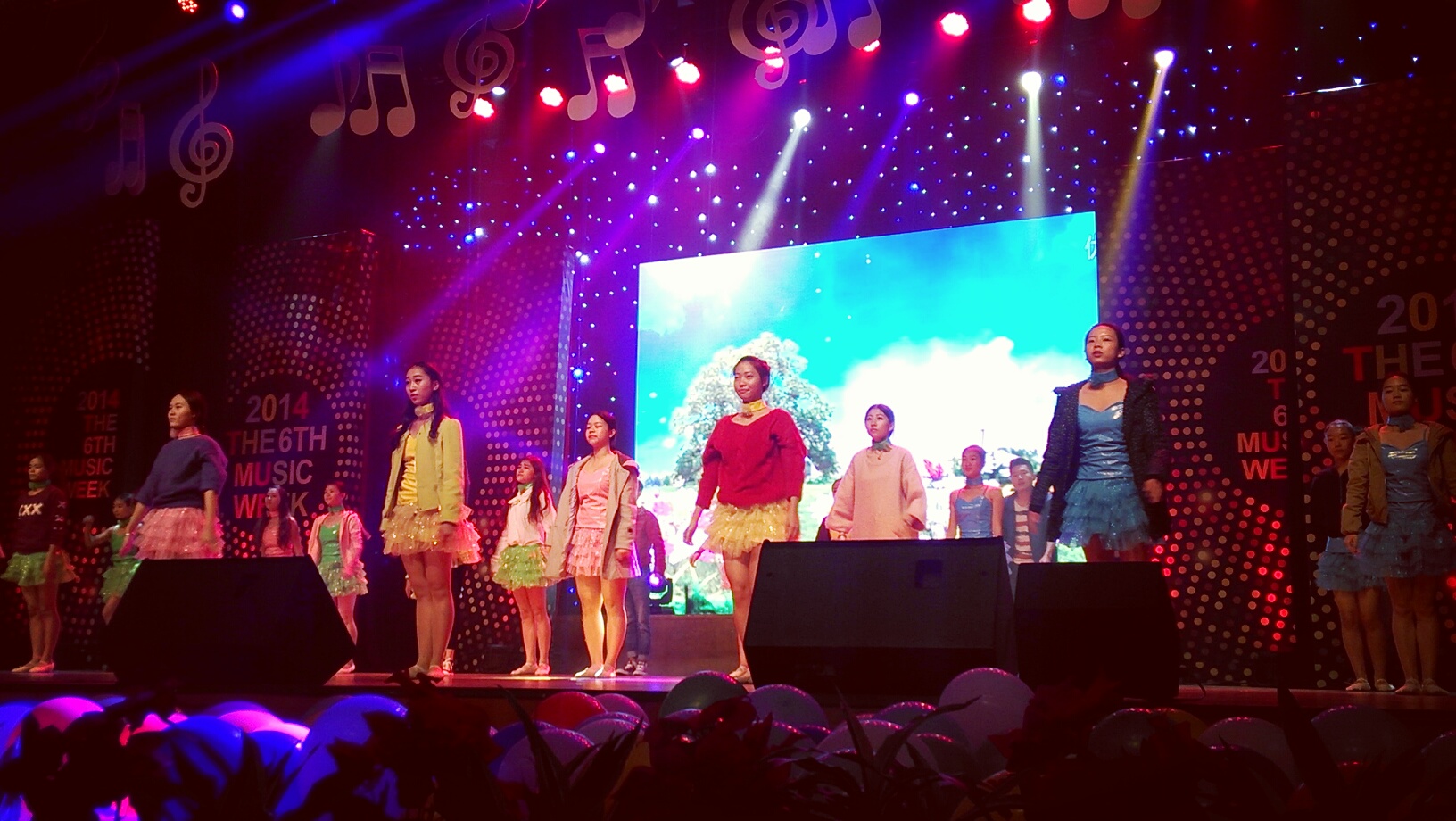 的学生主持进行试灯光,力求做到最好。接下来就是朝鲜舞《美阿里》的演员彩排,她们穿上表演的服装,站上舞台,灯光师配好灯光,音乐响起,就开始了正式的彩排,演员们一遍一遍的走场,为了晚上演出顺利,都在努力把位置记好。接着是 三重奏的彩排,剧务人员和演员需要配合好,摆好钢琴和话筒,开始了彩排,灯光师们不断的调整,演员也不断的调整自己的力度和方法,确保能达到最好的效果。刚开始,演员们还有些紧张,第一首曲子没有合上,经过指导老师胡锦超的细心指导,明白需要耳朵的努力倾听,才能达到最好,同学们吸取经验,第二次的彩排明显有了大进步。由徐伊凡演奏的《荒野七侠》充满了动感,激情四射,一心三用的她,震撼了在场的同学,加上灯光和背景,更是锦上添花。而在后台,弹古筝的六个同学在很努力的练习,她们的合奏,需要的是团队精神,不管是在节奏和音乐的表达上都要统一,注意力要高度集中,六架古筝搬上台,同学们就开始演奏,演奏结束后,剧务人员认真对点,确保晚上能提高办事的效率。舞蹈《园丁与当代大学生》在接下来的彩排中吸引了同学们的注意,老师就像园丁,呵护着祖国花朵的成长,这支舞充分的表达了学生与老师之间的密切关系,学生尊敬老师,老师爱护学生,不断的走场,不断的定位,演员们已经累了,但为了晚上的演出,她们坚持了下来。有的同学有两个或两个以上的节目,刚跳完又得跑去换衣服准备下一场,很是辛苦。人们常说先苦后甜,现在苦,表演后观众的肯定就是甜,付出一定会有收获。