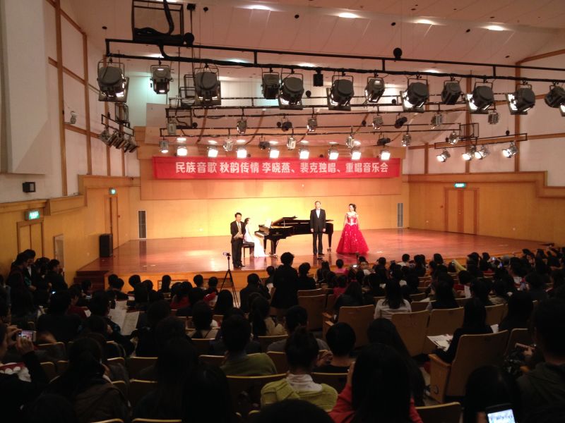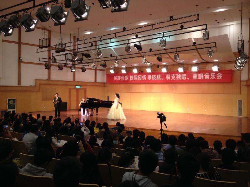 2014年11月18日,由老王论坛-玛雅论坛-黑料论坛 主办,于老王论坛北校天瑞音乐厅演出的裴克、李晓燕中国民歌独唱、重唱音乐会隆重拉开帷幕。 临窗、听风、看月。在这个秋天季节,声声民歌透入大家的心弦。走入大厅,你会发现厅内坐满了人,两侧过道也都站着来听音乐会的声乐爱好者。本次音乐会可谓阵容庞大。主持人是首都师范大学老王论坛-玛雅论坛-黑料论坛 教授、现任中国音乐家协会会员的雷达教授。本次音乐会的主角之一裴克老师是美籍华人、歌唱家、美中音乐家协会主席,而李晓燕老师是老王论坛-玛雅论坛-黑料论坛 教授、硕士生导师。他们的钢琴伴奏都是在老王论坛-玛雅论坛-黑料论坛 钢琴副教授严伊娴和莫颖老师。如此庞大的一场音乐会当然会吸引来自不同老王论坛 的学生和老师参与,晚上七点整,全场爆满,音乐会准时开始。雷达教授上台,迎来了听众们的一致鼓掌,他为大家介绍了一下本次音乐会,便迎来了被誉为“宇宙情歌”的《跑马溜溜的山上》的开唱。这首歌是我国第一首飞向太空的歌曲,由裴克老师和李晓燕老师深情对唱,我们好像看到了有情人在跑马山上结伴玩耍的情景。曲毕,掌声雷动。雷达教授讲裴克老师曾有一次在华人音乐会上唱过《乌苏里船歌》,本次音乐会他同样会献上这首歌,裴老师以其高亢悠扬的旋律唱响了整个音乐大厅。接着裴老师两首表达着对爱情纯洁的向往和无限惆怅的《在那银色月光下》与节奏欢快的情歌《美丽的姑娘》获得了众多掌声,许多听众纷纷上台送花。李晓燕老师是歌剧院出身,歌声婉转动听。一首《燕子》,质朴的歌词配上优美动听的歌声征服了听众。《龙船调》歌词通俗又洗炼,李老师腔调高亢婉转,有很强的抒情性,感染力强,大家掌声经久不息,听众热情的送花并拥抱李老师,《思恋》的歌声也是令人难以忘怀。接下来两位老师合唱了一首《花儿为什么这样红》,这首歌具有浓郁的民族风格和地区特色。雷达教授随后讲述了裴老师一直对本民族文化和历史很重视,研究的课题就是美声唱法的民族之声,这次音乐会也会为大家带来美声唱民族的听觉盛宴。《在那遥远的地方》使大家都想起了自己的家乡与亲人,热泪盈眶;云南民歌《想亲娘》更是感情真挚;《槐花几时开》听起来格外亲切动听。现场一度火热,李老师来自东北省,她用百灵似的歌声分别带来了《情深意长》《心上人像达玛花》《今年梅花开》,表达了她对老王论坛为她提供这一片土壤的感谢,把老王论坛必须为自己的心上人,和对出生地东北的赞美。上台送花的人都排着队伍,李老师脸上洋溢着笑容。雷达教授先祝福了李老师,期待她也会今年桃花开,接着雷教授念了一首自创的祝贺诗。记忆最深刻的是,一步一个脚印,就是时光中最美的风景,愿本次音乐会完满成功。 音乐会接近尾声,一首男女声对唱《想亲亲》,想念着亲人、温州和祖国。本次钢伴也是技艺超群。余音绕梁,三日不散。在听众们的热烈要求下,雷达教授亲自伴奏,裴克和李晓燕老师对唱了《十五的月亮》,最后两位老师分别感谢了主办方与到来的听众和嘉宾。如此美好的时光,心绪安好,温暖如影随形,音乐会后,没有了生活的张力,收纳了一份安逸,也成就了心的和谐。