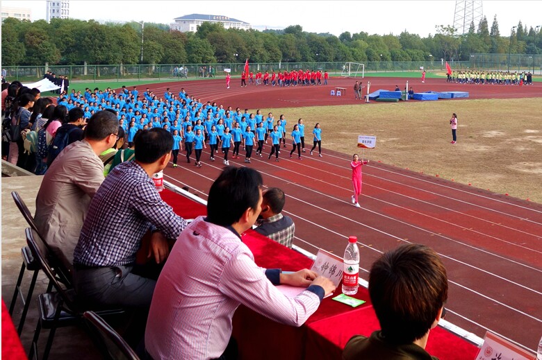 代表队逐一入场,展现了运动员们朝气蓬勃,活力四射,斗志昂扬的精神面貌。简短的入场仪式之后,校长开始讲话,他强调了学校教育,特别是高校体育教育直接肩负着“增强大学生体质”和“促进大学生身体健康”的使命。为促进学生积极参加体育锻炼,使学生掌握锻炼身体的基本技能,使学生走在阳光下享受健康享受快乐,精心组织运动会,营造热烈的竞赛氛围,提供良好的环境丰富体育活动的形式。紧接着是运动员代表宣誓,裁判员代表宣誓,他们代表了所有运动员与工作人员心声。